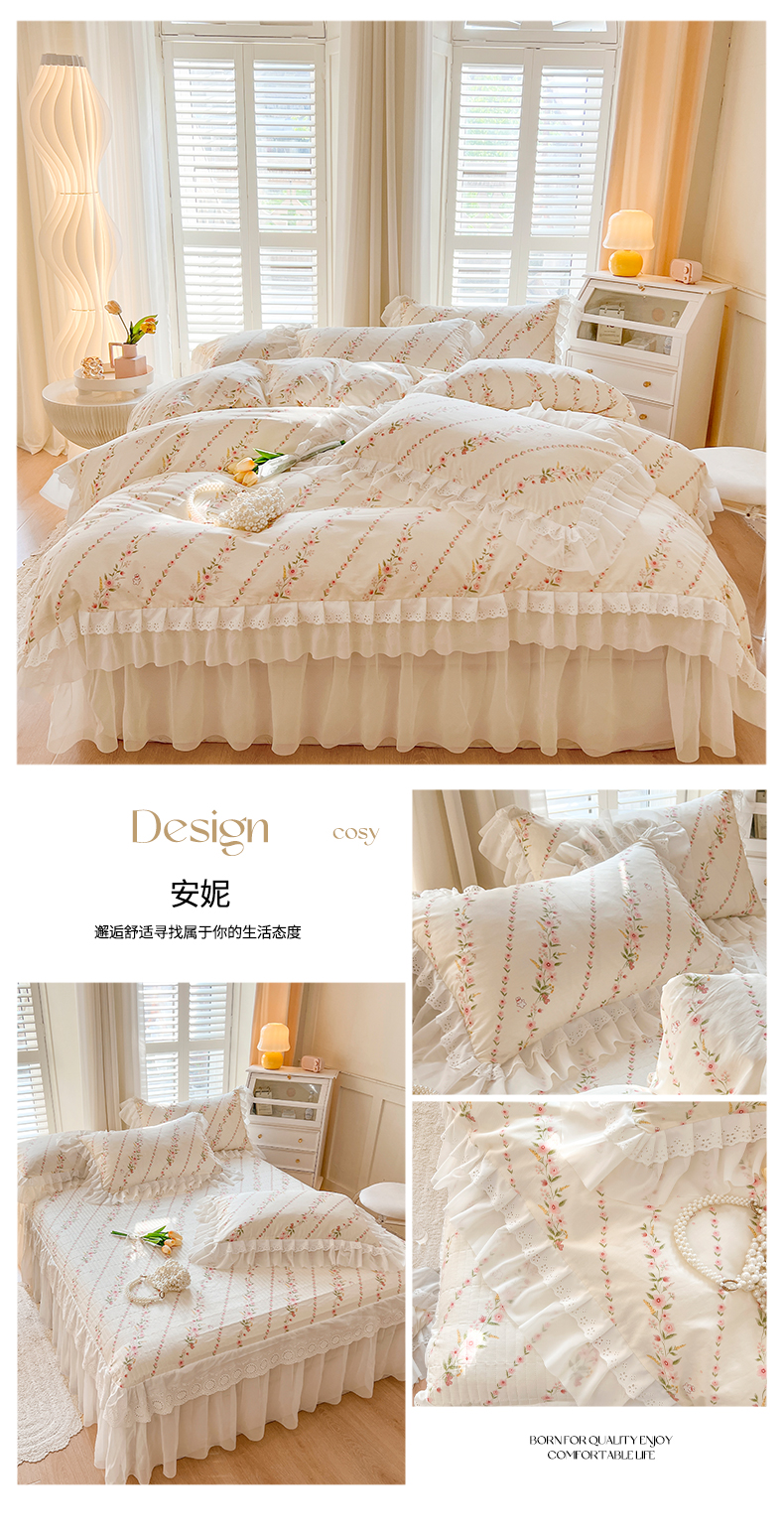 当前位置: 91家纺网 > 商品网购 > 床品套件 > 四件套 > 全棉普通四件套 > 瑞宝 2025新款镂空全棉印花床裙款四件套 安妮