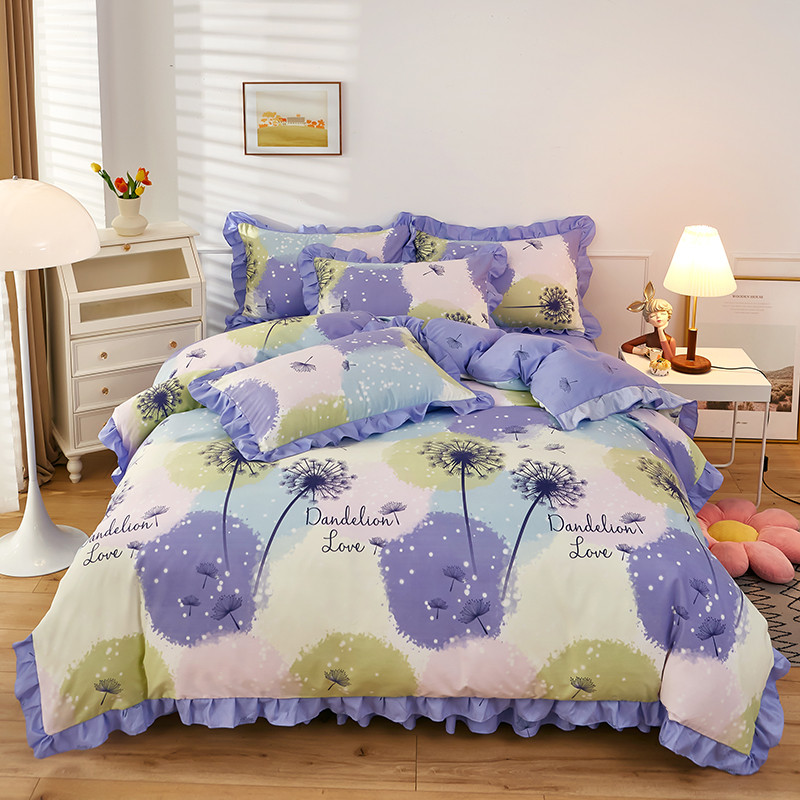 当前位置: 91家纺网 > 商品网购 > 床品套件 > 四件套 > 普通磨毛四件套 > 艾橙家纺 2023新款小清新韩版磨毛花边四件套 浮梦飞花
