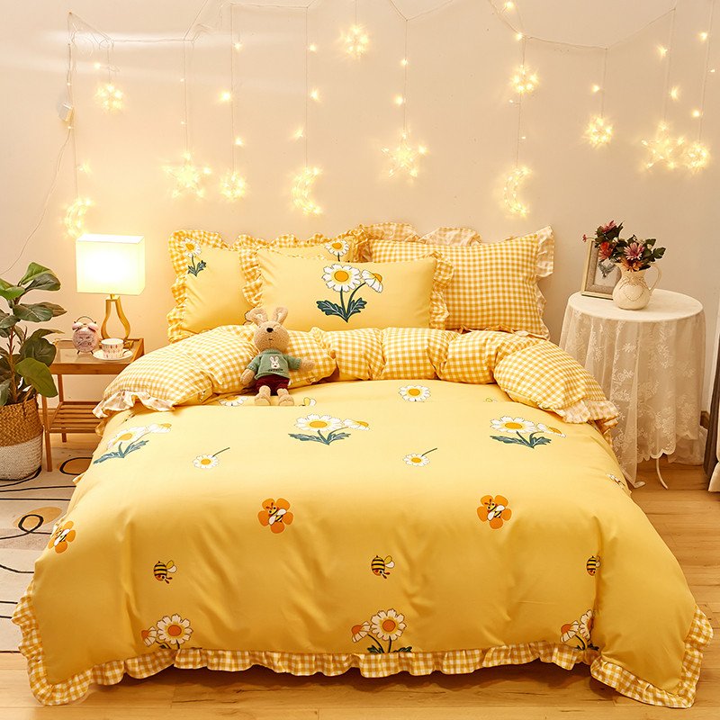 当前位置: 91家纺网 > 商品网购 > 床品套件 > 四件套 > 普通磨毛四件套 > 艾橙家纺 2023新款小清新韩版磨毛花边四件套 沁香花语