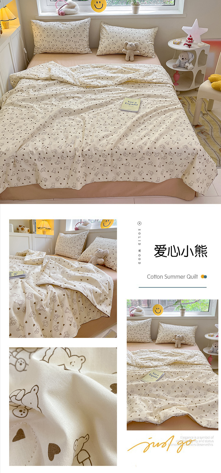 商品名称:柠馨 2023新款全棉印花夏被 爱心小熊