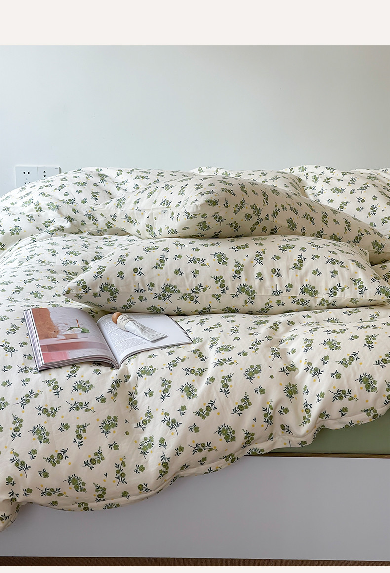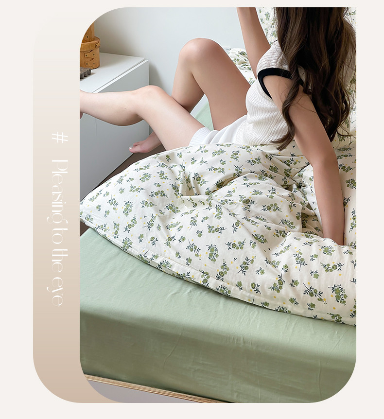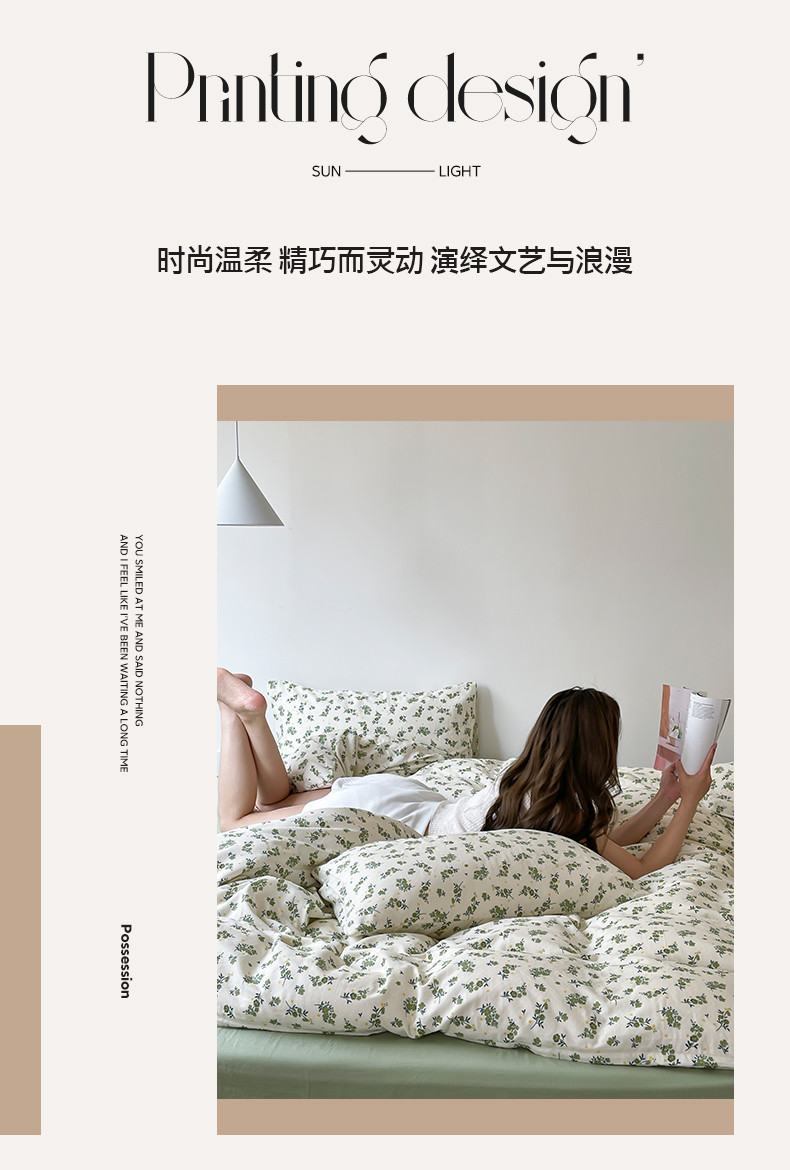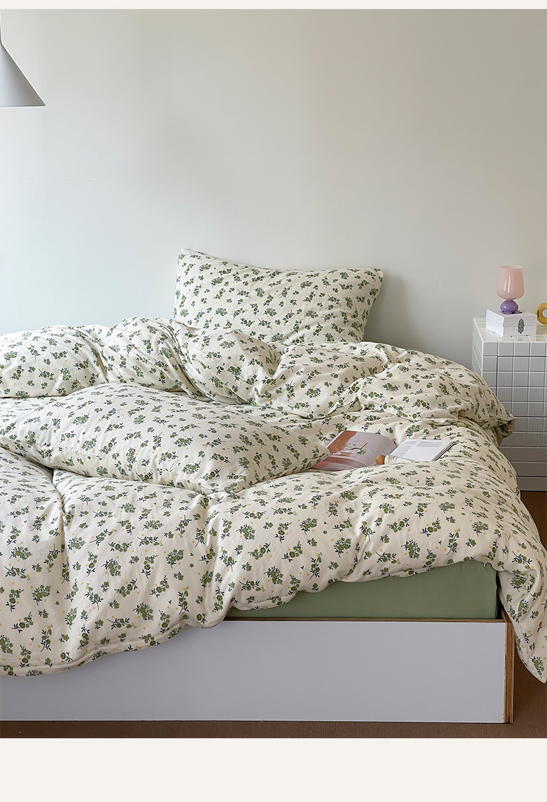 商品名称:荣轩家居 2023新款A类全棉双层纱印花四件套 青茶