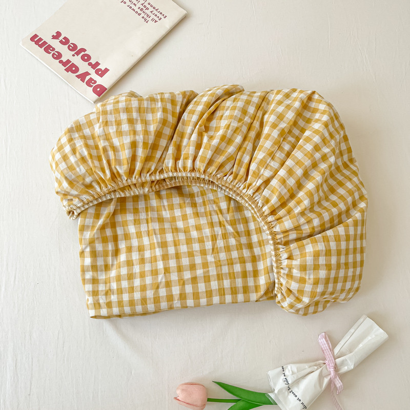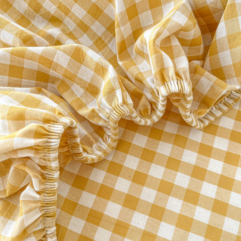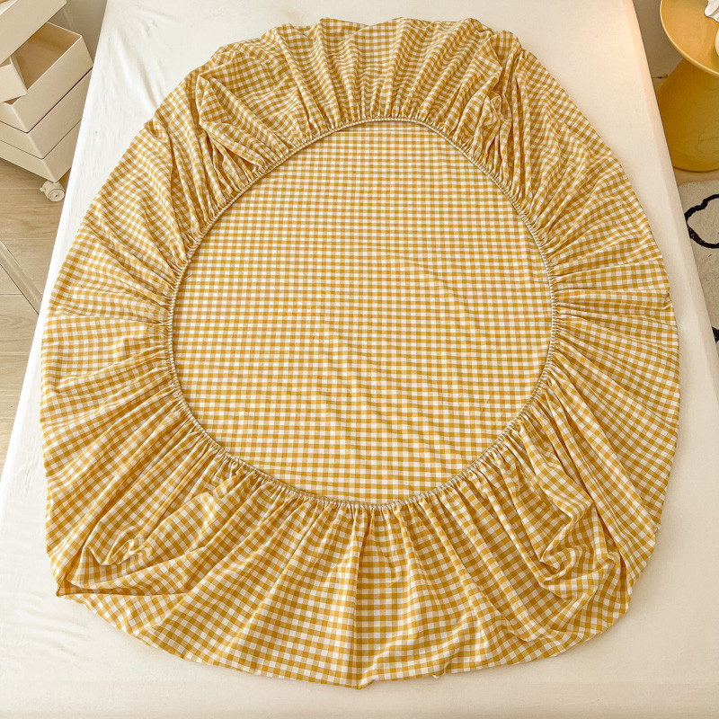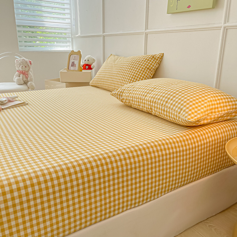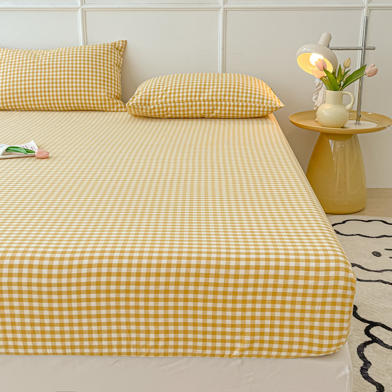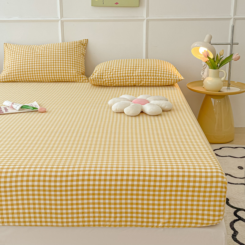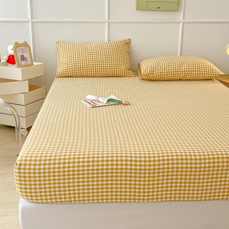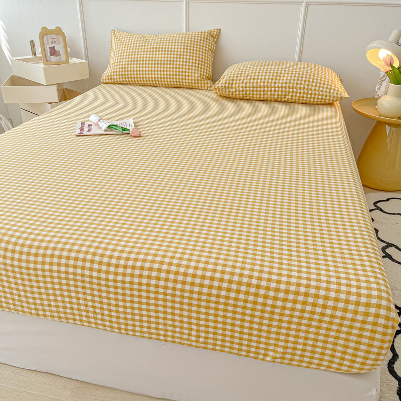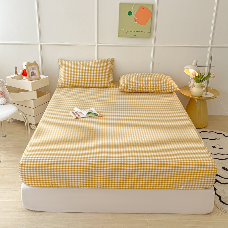 盼季 2023新款水洗棉床笠三件套防滑床罩席梦思全包围保护套 布丁黄格