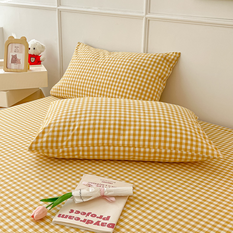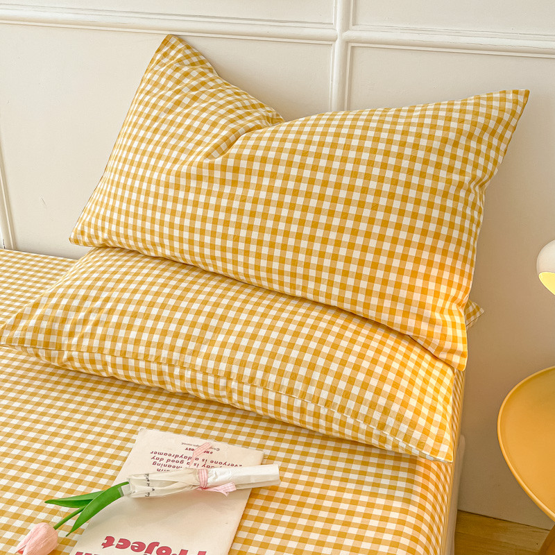 商品名称:盼季 2023新款水洗棉床笠三件套防滑床罩席梦思全包围保护套 布丁黄格