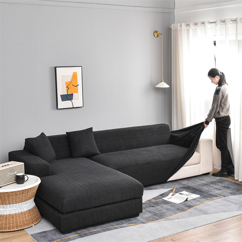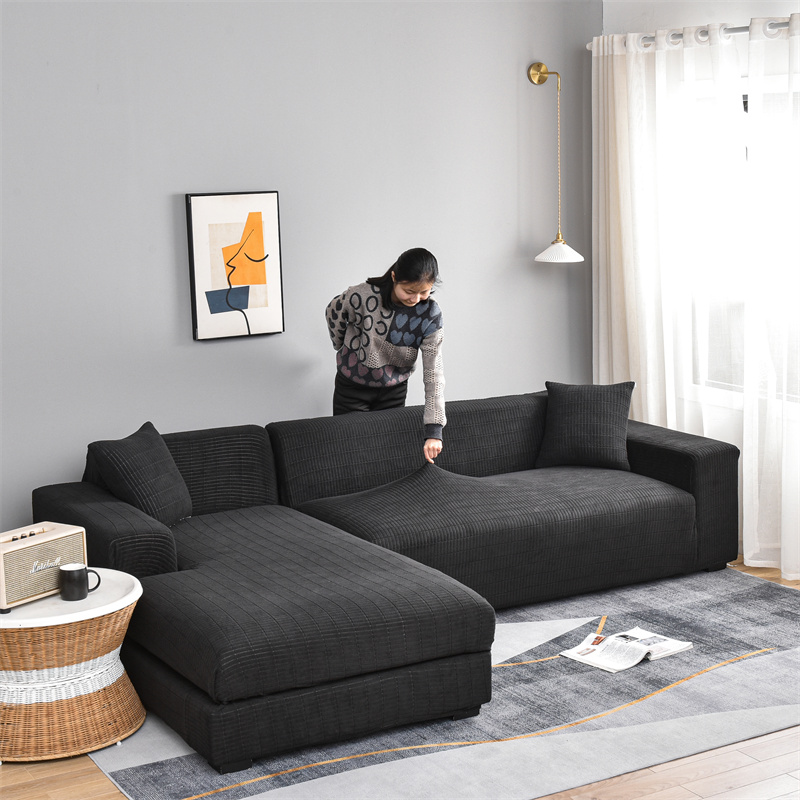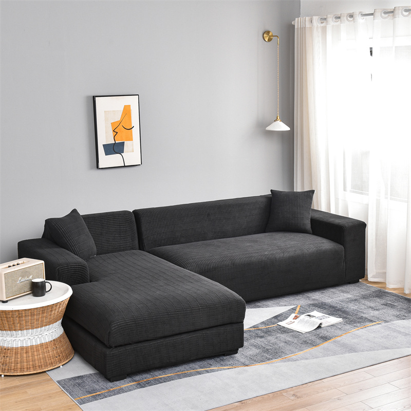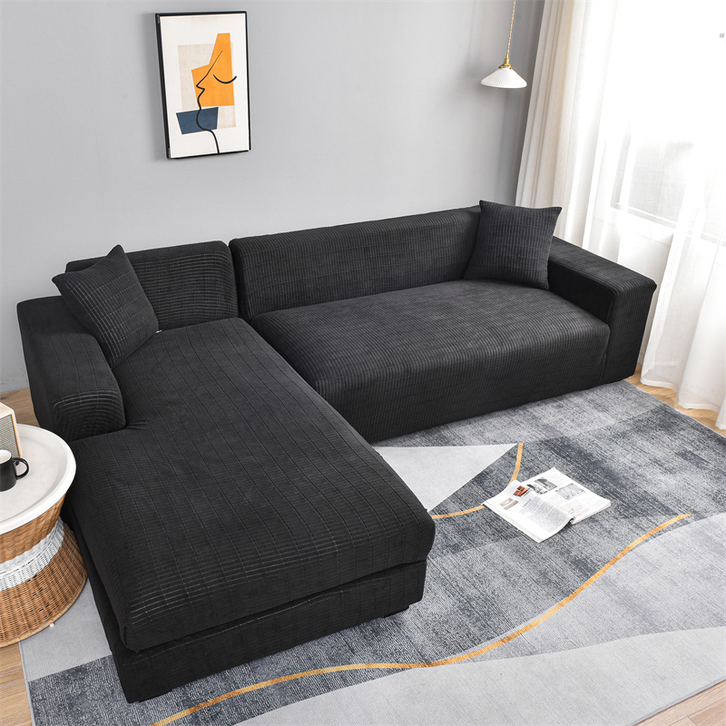 四季鹿 2023新款格格绒沙发套贵妃组合 黑色