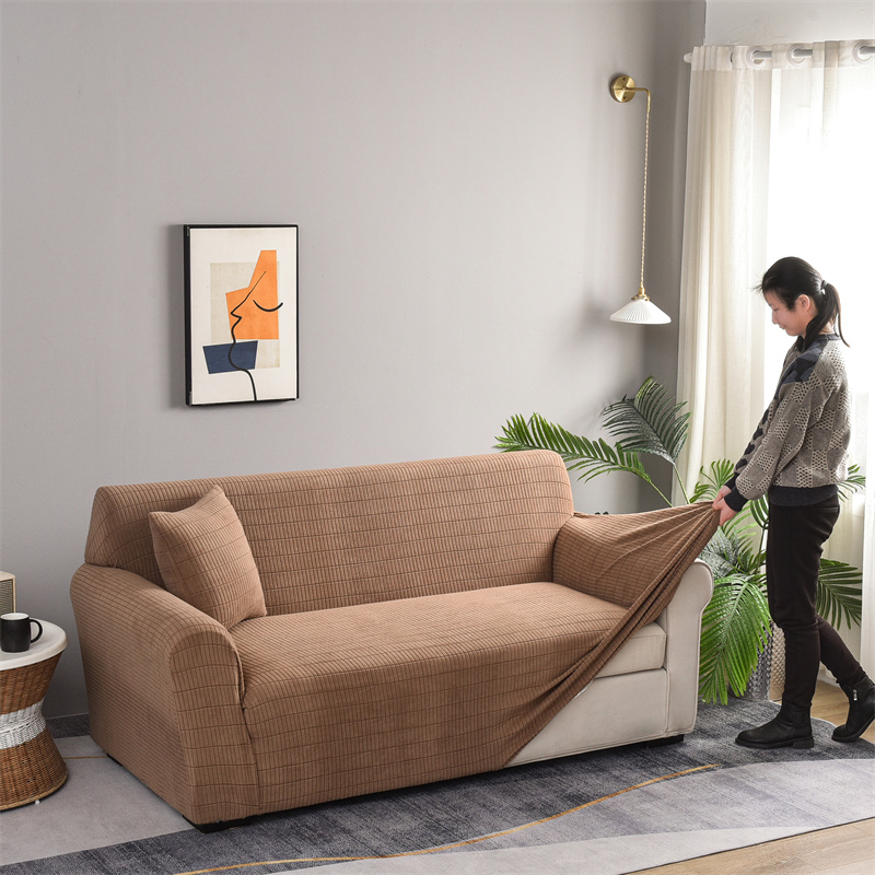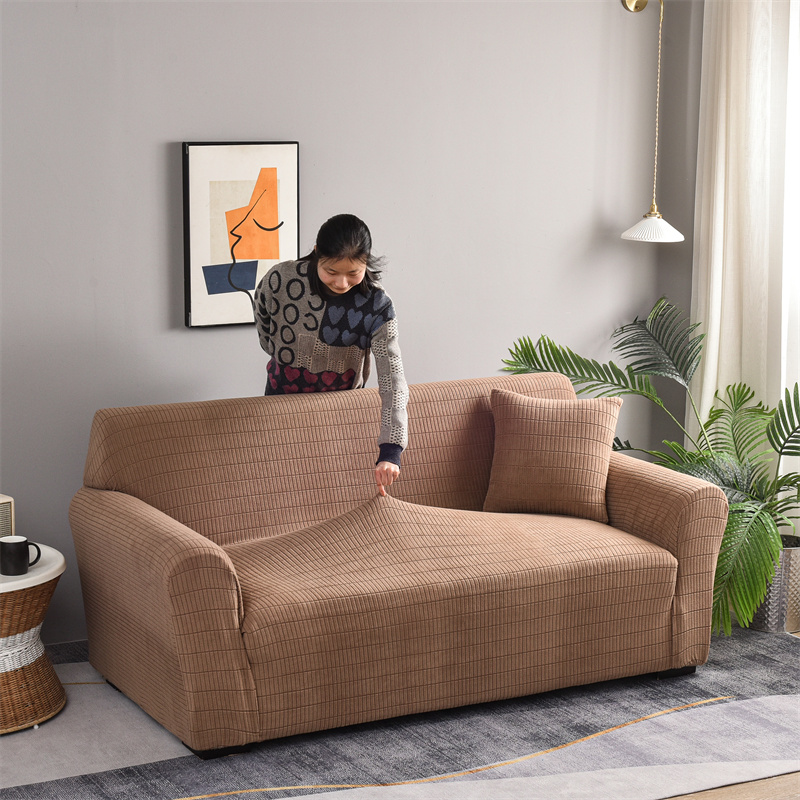 四季鹿 2023新款格格绒沙发套三人沙发 驼色