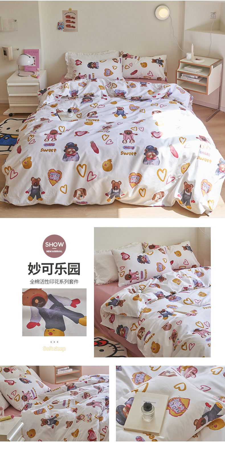 当前位置: 91家纺网 > 商品网购 > 床品套件 > 四件套 > 全棉普通四件套 > 窝米 2023新款13370全棉卡通风系列四件套 妙可乐园