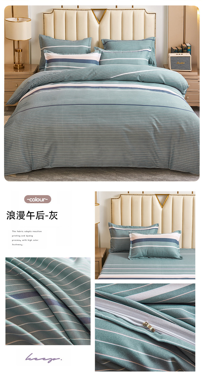 商品名称:鑫缘2025新款印花植物羊绒加厚磨毛四件套1.2米学生三件套 浪漫午后-灰