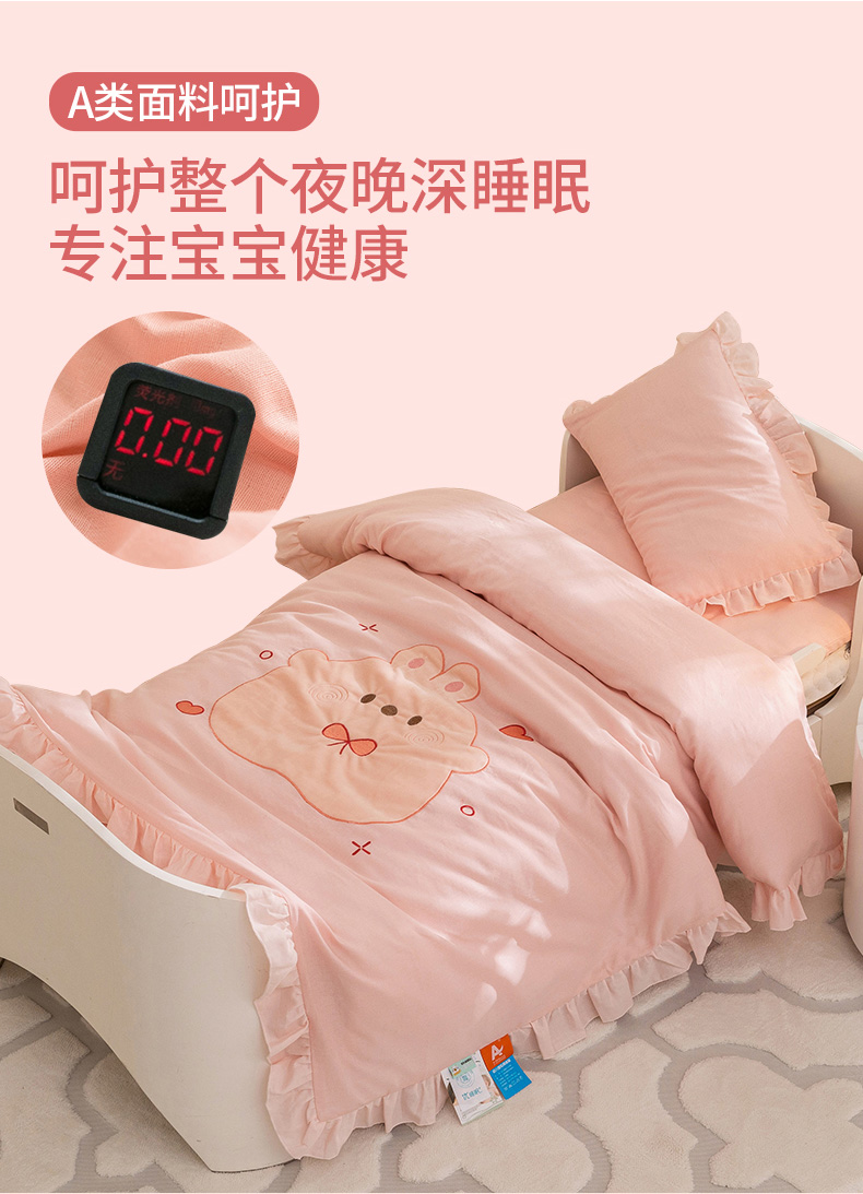 (总)喜多兔儿童家纺 2025新款小美好13372纯棉绣花幼儿园被子三件套多件套,组合图仅供展示,粉色美好小猫咪,粉色美好小兔子,黄色美好卡皮巴拉,黄色美好小狮子,蓝色美好独角兽,蓝色美好小熊,绿色美好小恐龙,绿色美好小青蛙