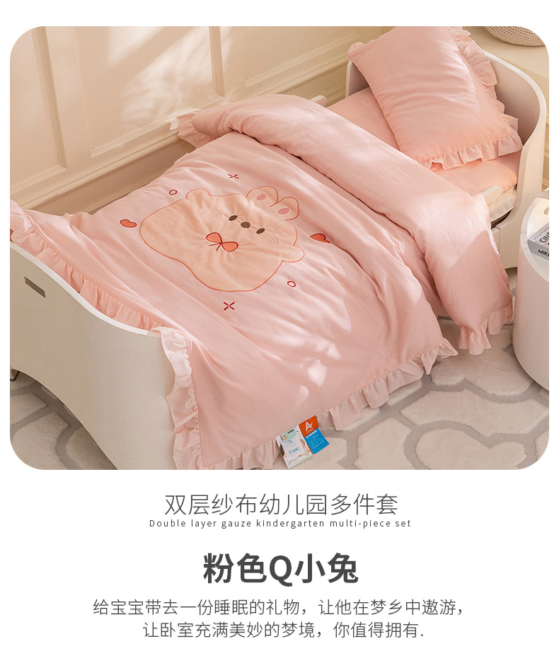 商品名称:(总)喜多兔 2023新款纯棉双层纱绣花幼儿园三件套