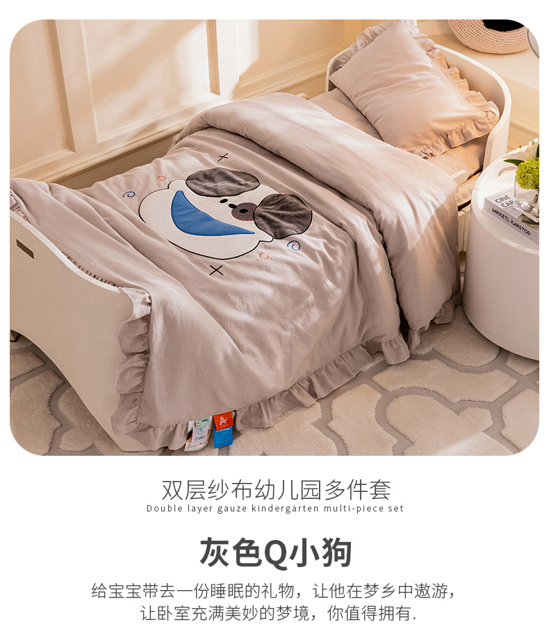 (总)喜多兔儿童家纺 2024新款小轻柔纱布纯棉双层纱空调被,灰色Q小狗,灰色萌熊猫,粉色Q小兔,粉色萌企鹅,绿色Q恐龙,绿色萌小牛,蓝色Q企鹅,蓝色萌小狮,黄色Q小鸡,黄色萌小鹿