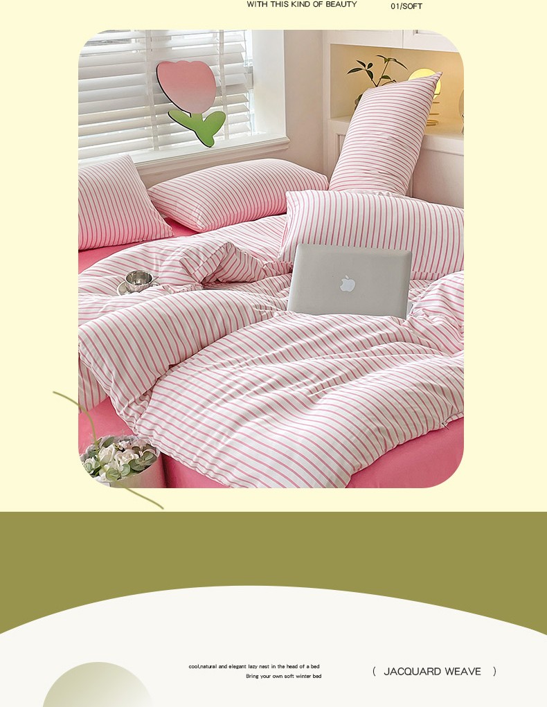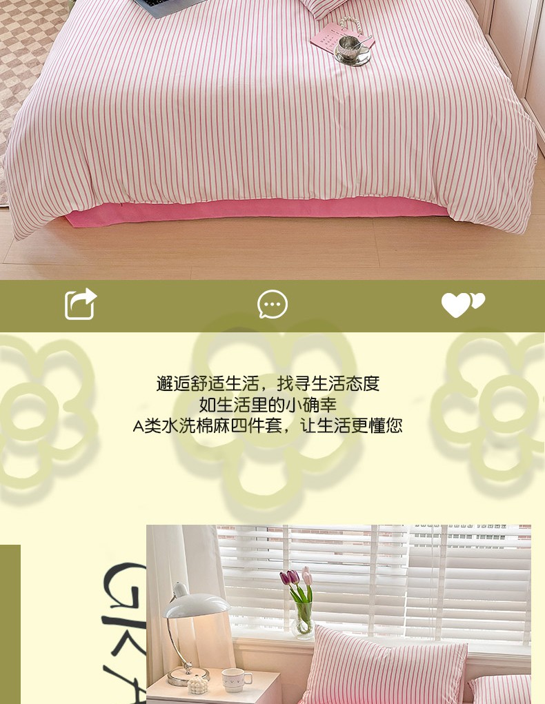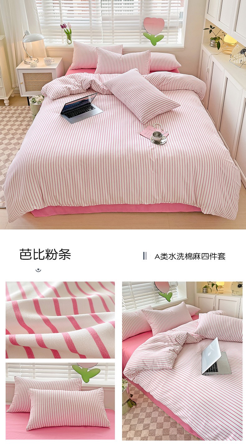 当前位置: 91家纺网 > 商品网购 > 床品套件 > 四件套 > 棉麻四件套 > 无印风双层纱水洗棉麻竖条纹四件套 芭比粉条