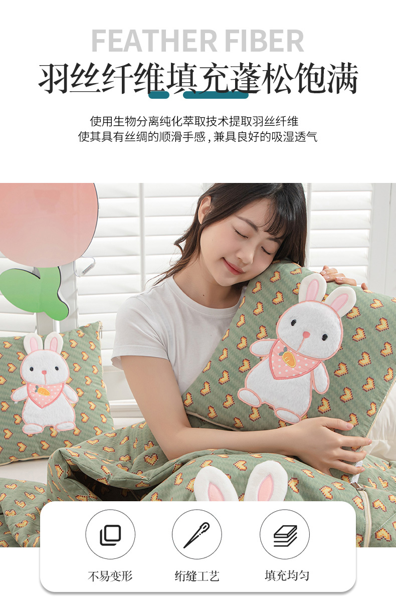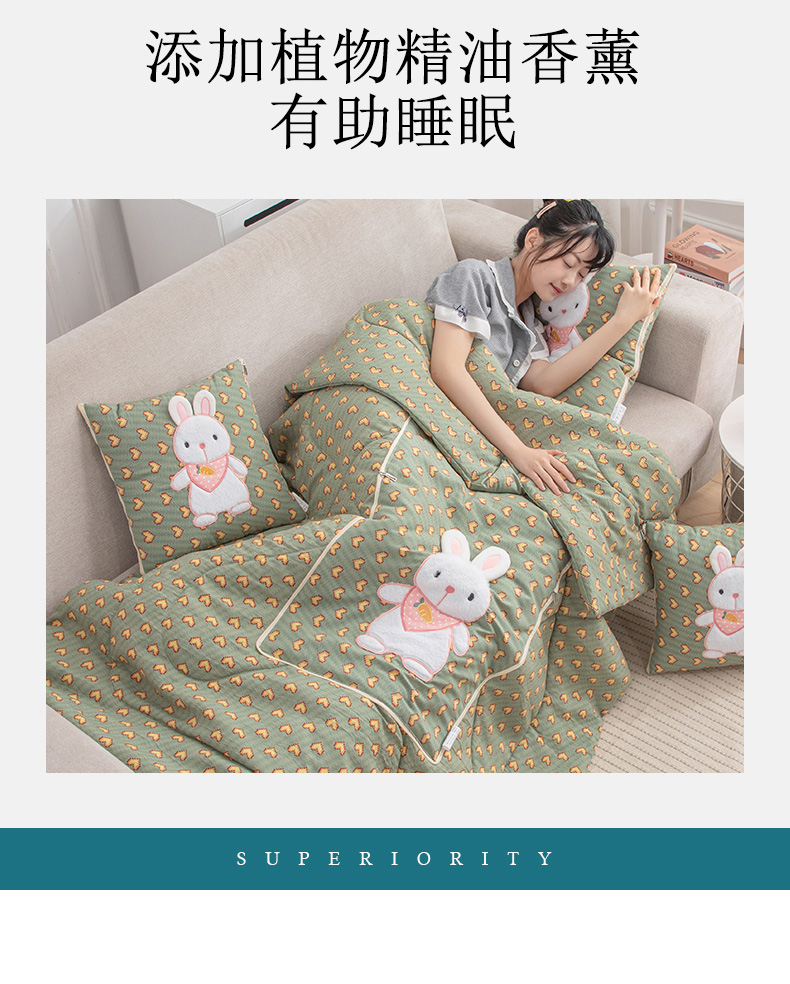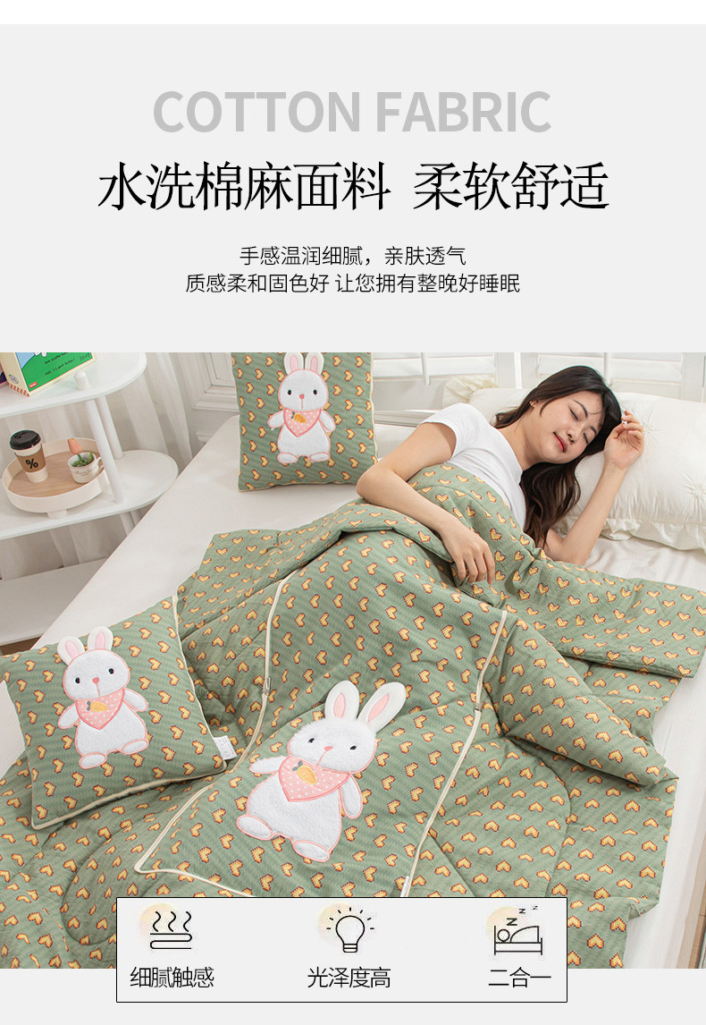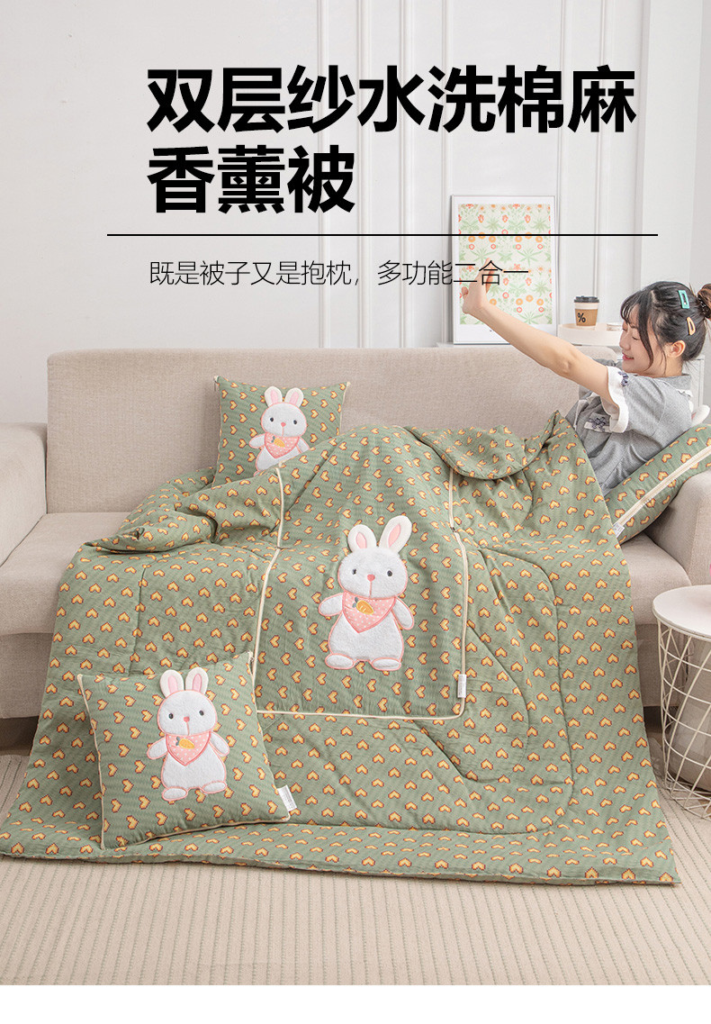 商品名称:翰轩家居 2023新款水洗棉麻植物精油香薰萌萌兔抱枕被 萌萌兔-心动绿