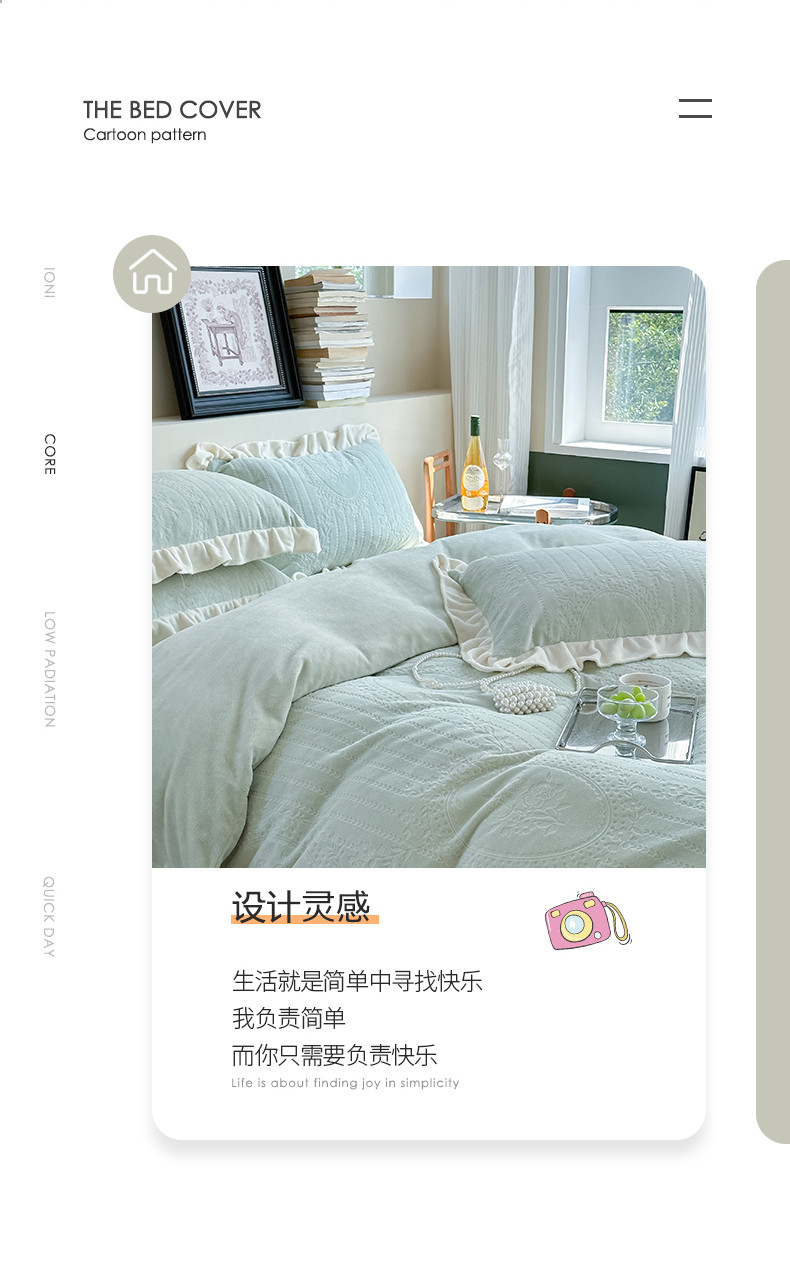 商品名称:(总)萝莉家纺 2023新款公主风加厚牛奶绒立体压花四件套
