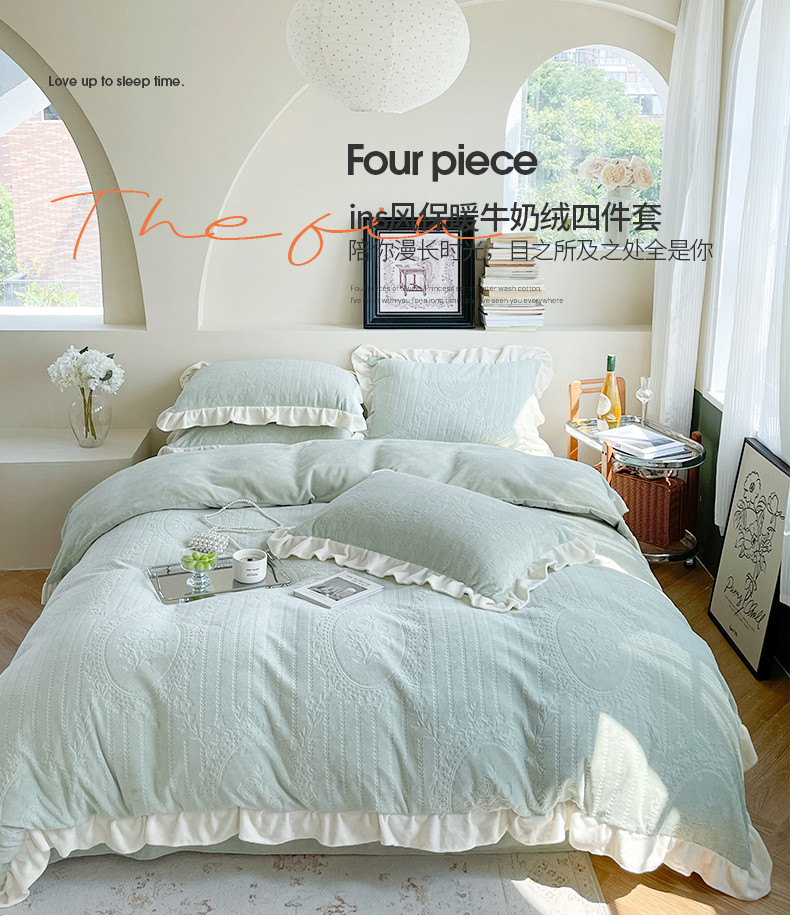 (总)萝莉家纺 2023新款公主风加厚牛奶绒立体压花四件套