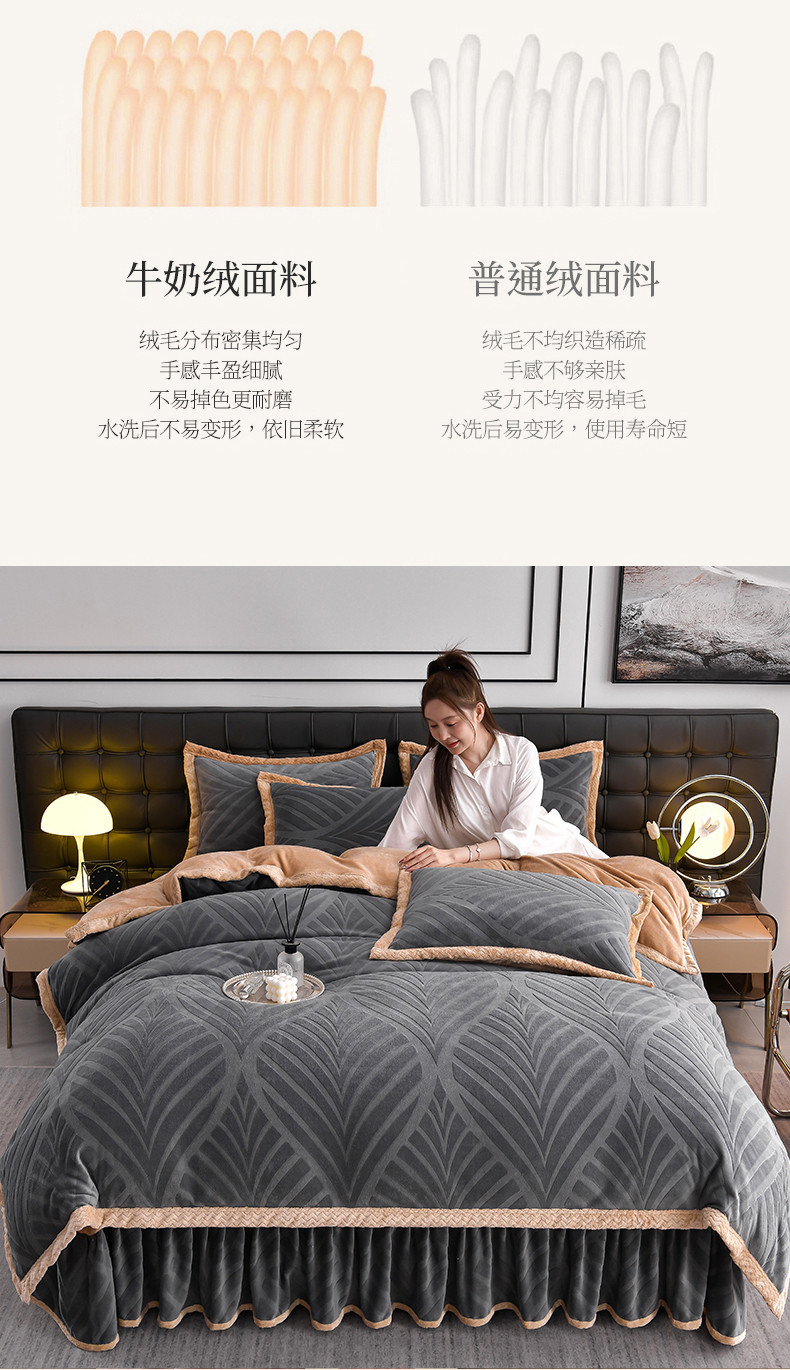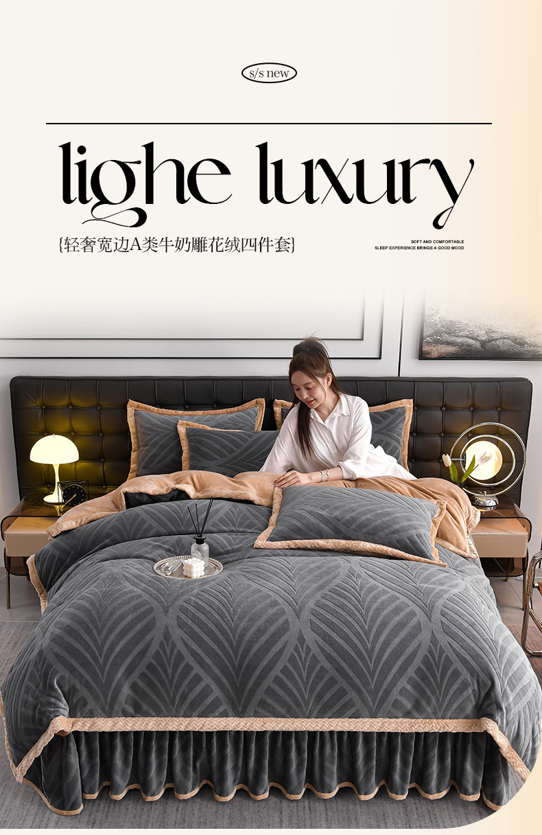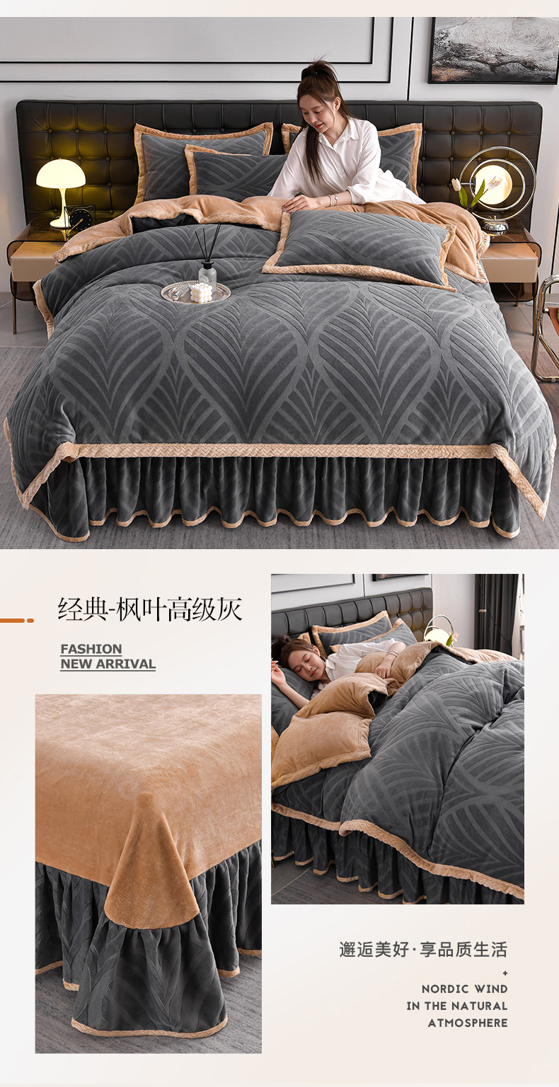 当前位置: 91家纺网 > 商品网购 > 床品套件 > 四件套 > 牛奶绒四件套 > 馨梦缘 2025新款轻奢宽边纯色A类牛奶绒雕花四件套 经典-枫叶高级灰