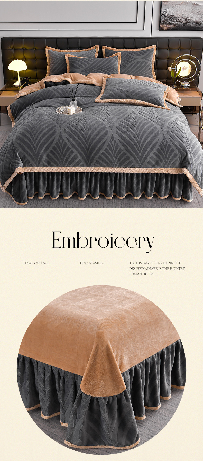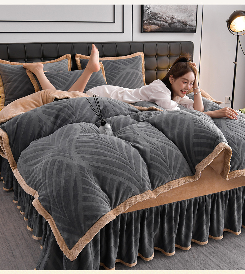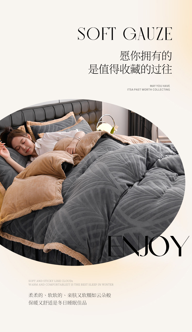 当前位置: 91家纺网 > 商品网购 > 床品套件 > 四件套 > 牛奶绒四件套 > 馨梦缘 2025新款轻奢宽边纯色A类牛奶绒雕花四件套 经典-枫叶高级灰