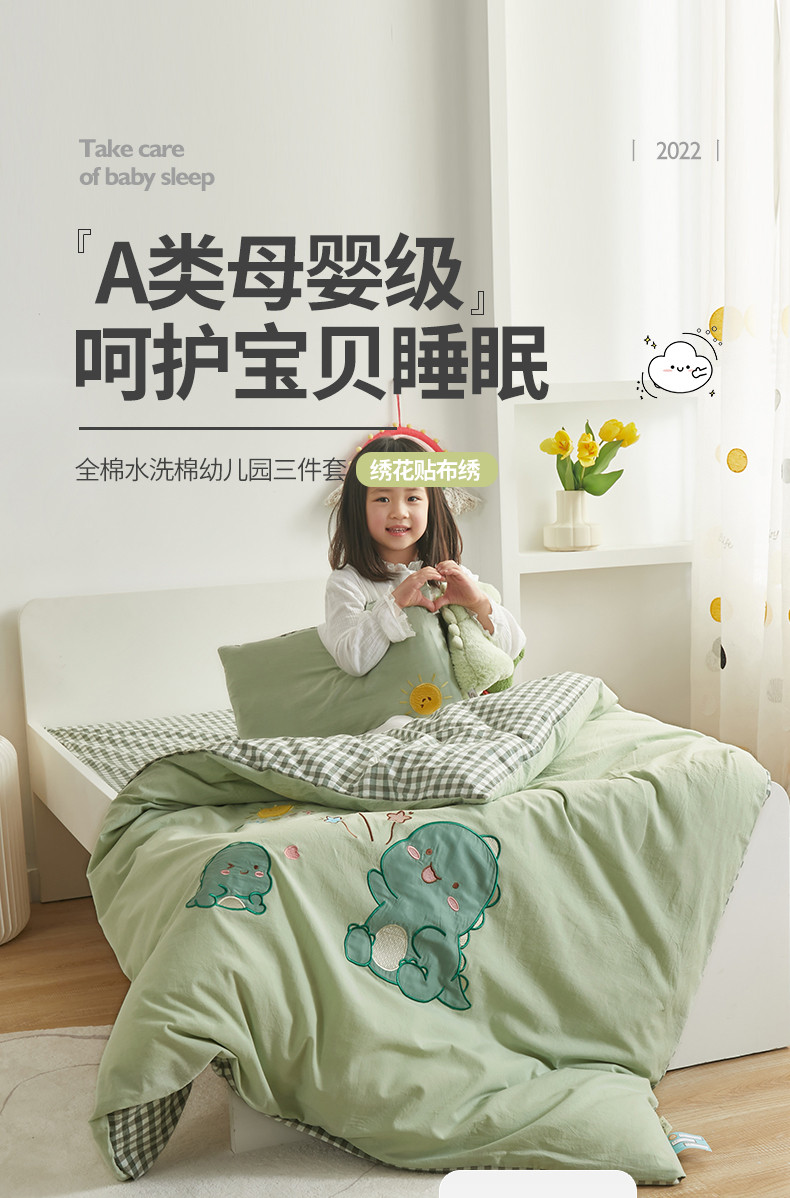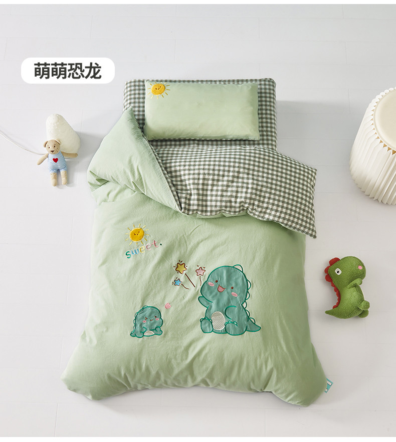 当前位置: 91家纺网 > 商品网购 > 床品套件 > 多件套 > 多件套 > 荷马之梦 新款儿童32s水洗棉绣花三件套幼儿园入园宝宝套件(童梦) 萌萌恐龙