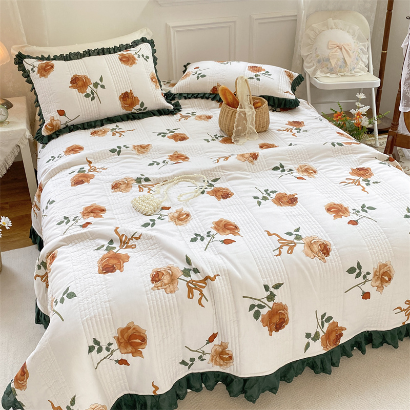 商品名称:菊上家纺 2023秋冬新品法式花边全棉单床盖 白玫瑰