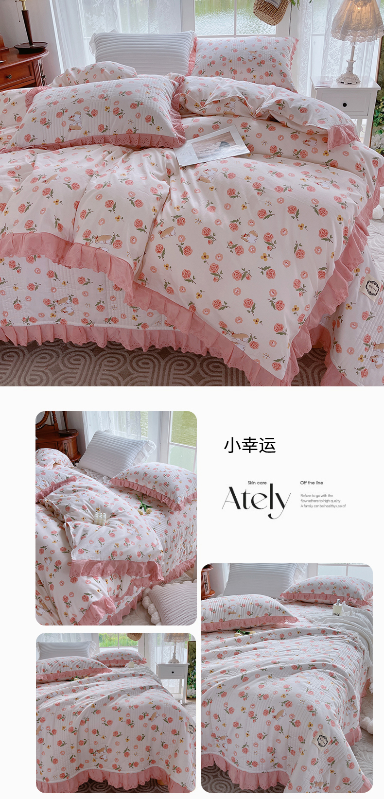 当前位置: 91家纺网 > 商品网购 > 床品套件 > 四件套 > 全棉普通四件套 > 菊上家纺 2023秋冬新品法式花边全棉床盖四件套 小幸运
