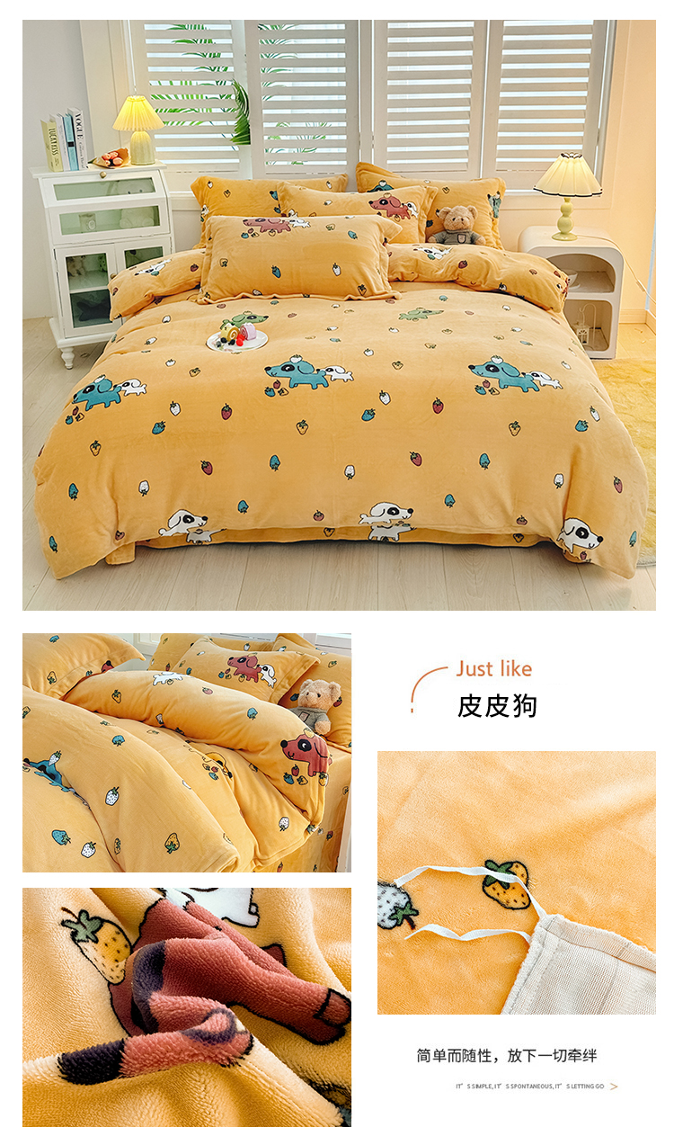 当前位置: 91家纺网 > 商品网购 > 床品套件 > 四件套 > 牛奶绒四件套 > 新款230克高克重印花牛奶绒四件套定做定制尺寸 皮皮狗
