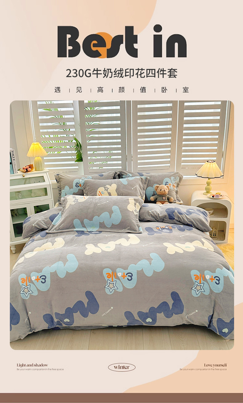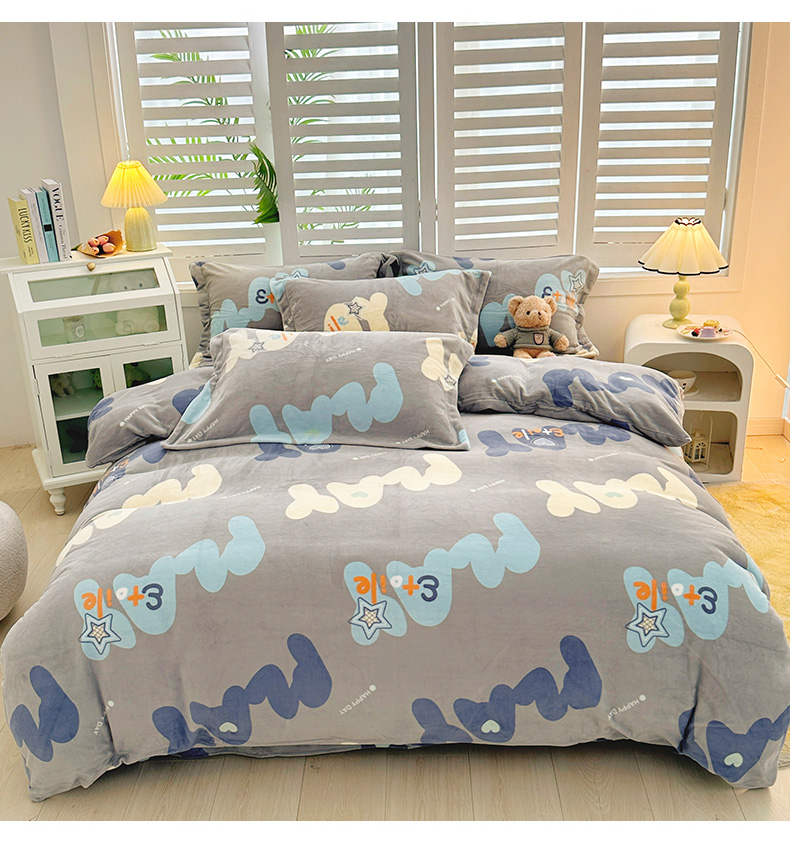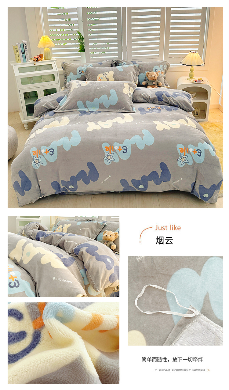当前位置: 91家纺网 > 商品网购 > 床品套件 > 四件套 > 牛奶绒四件套 > 新款230克高克重印花牛奶绒四件套定做定制尺寸 烟云