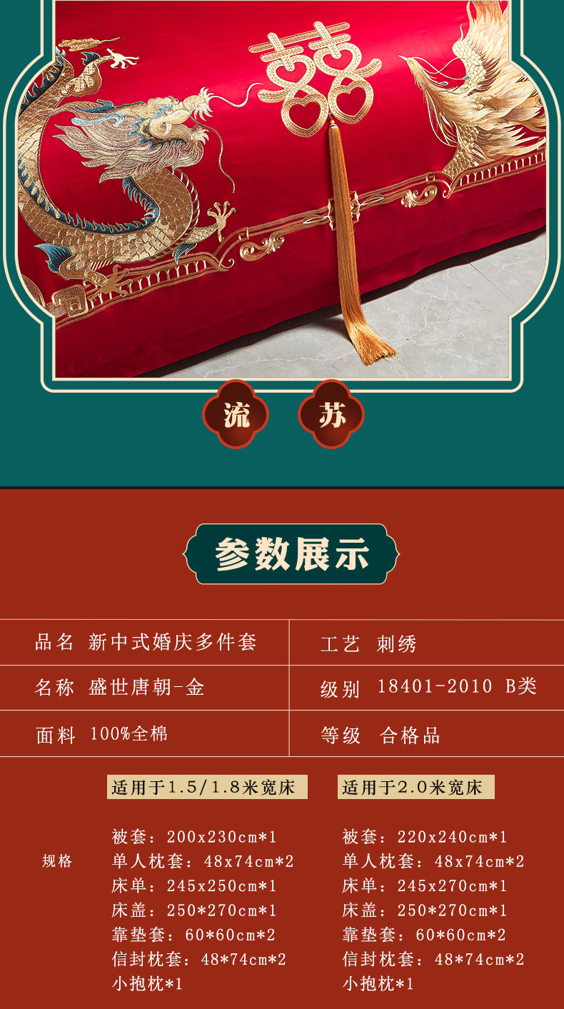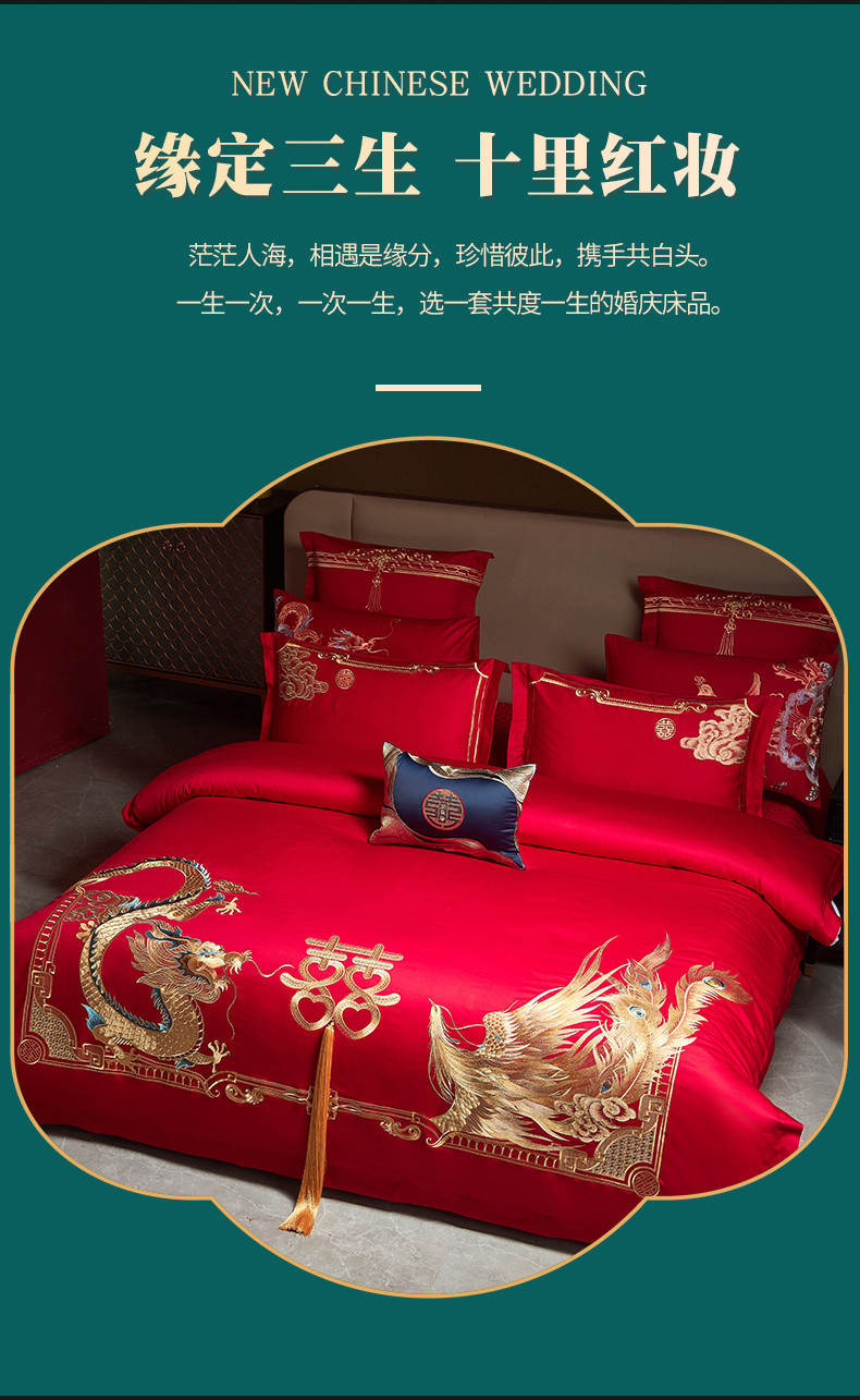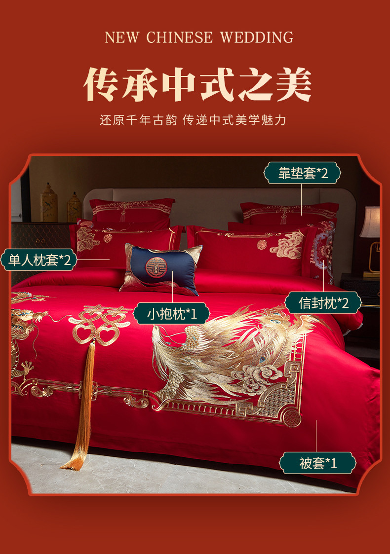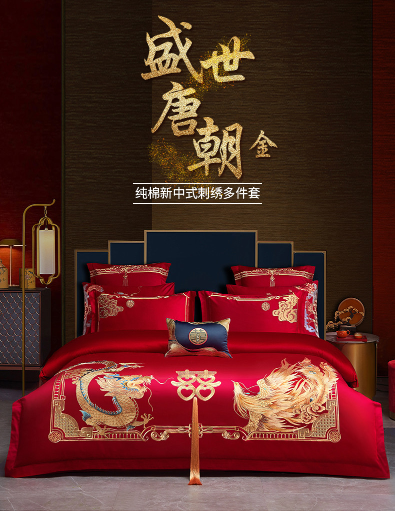 当前位置: 91家纺网 > 商品网购 > 床品套件 > 多件套 > 多件套 > 宏羽纺 2024新款纯棉新中式刺绣婚庆多件套 盛世唐朝-金