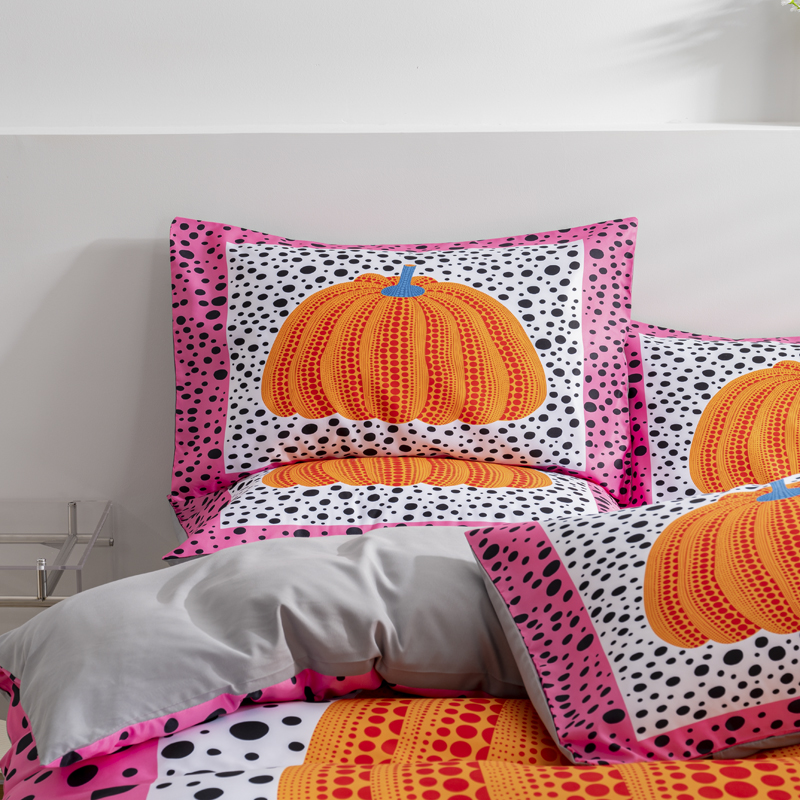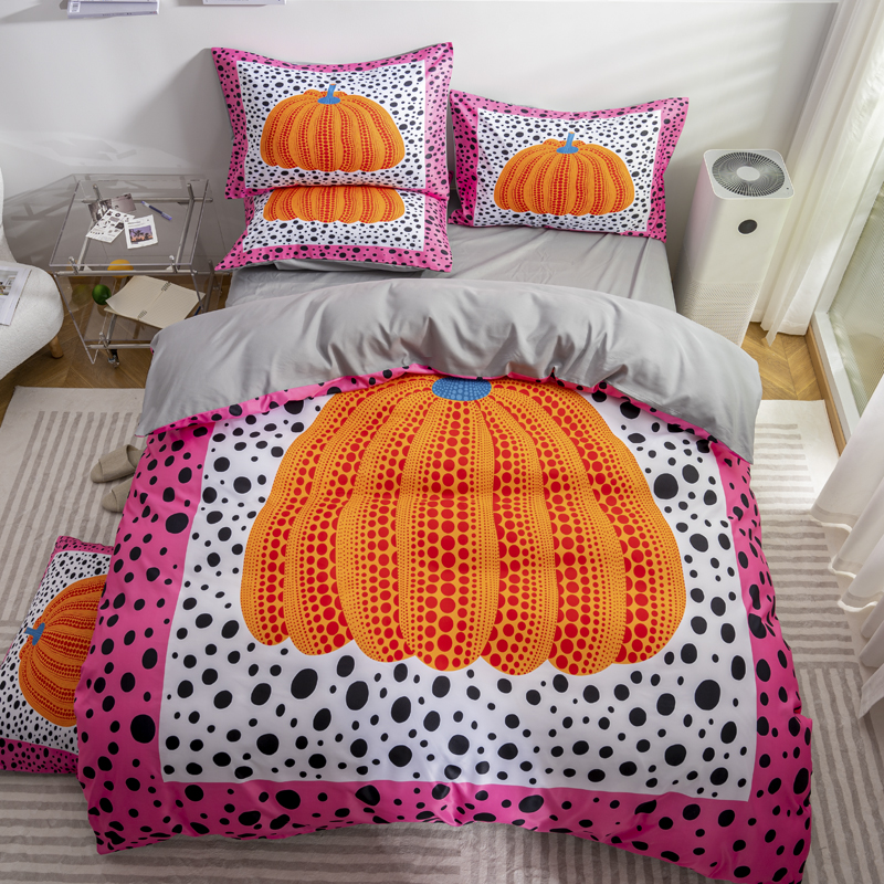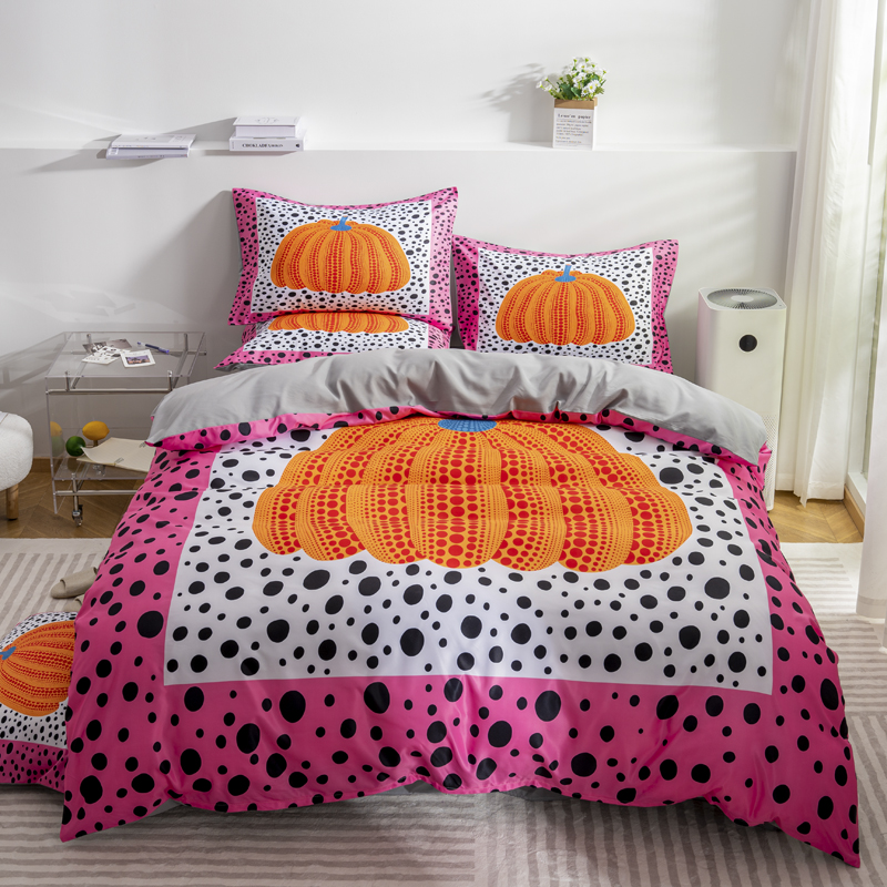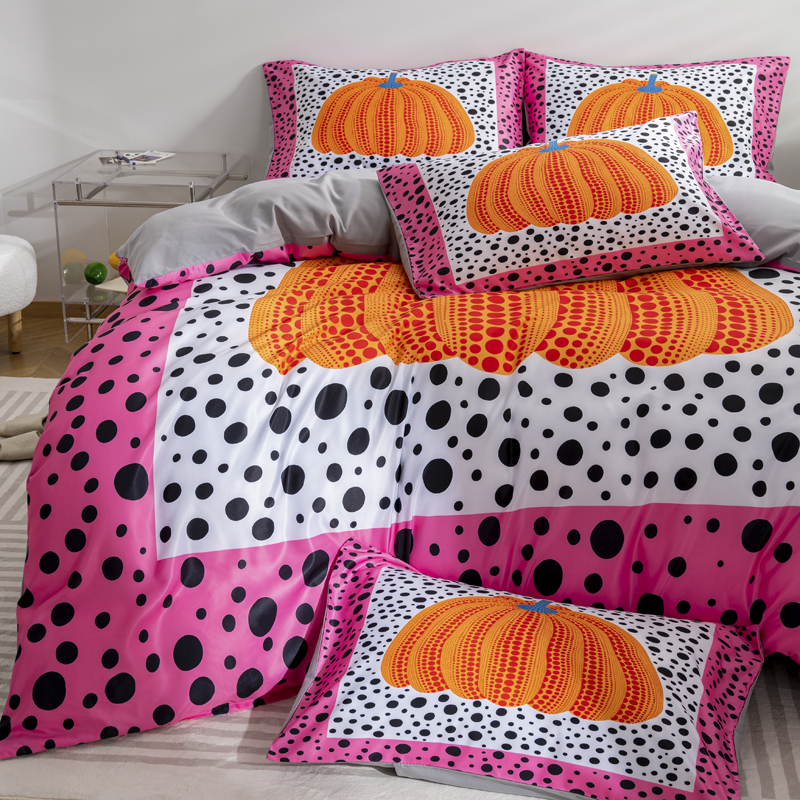 色鬼布艺 2023新款水洗天丝四件套 波点南瓜 粉