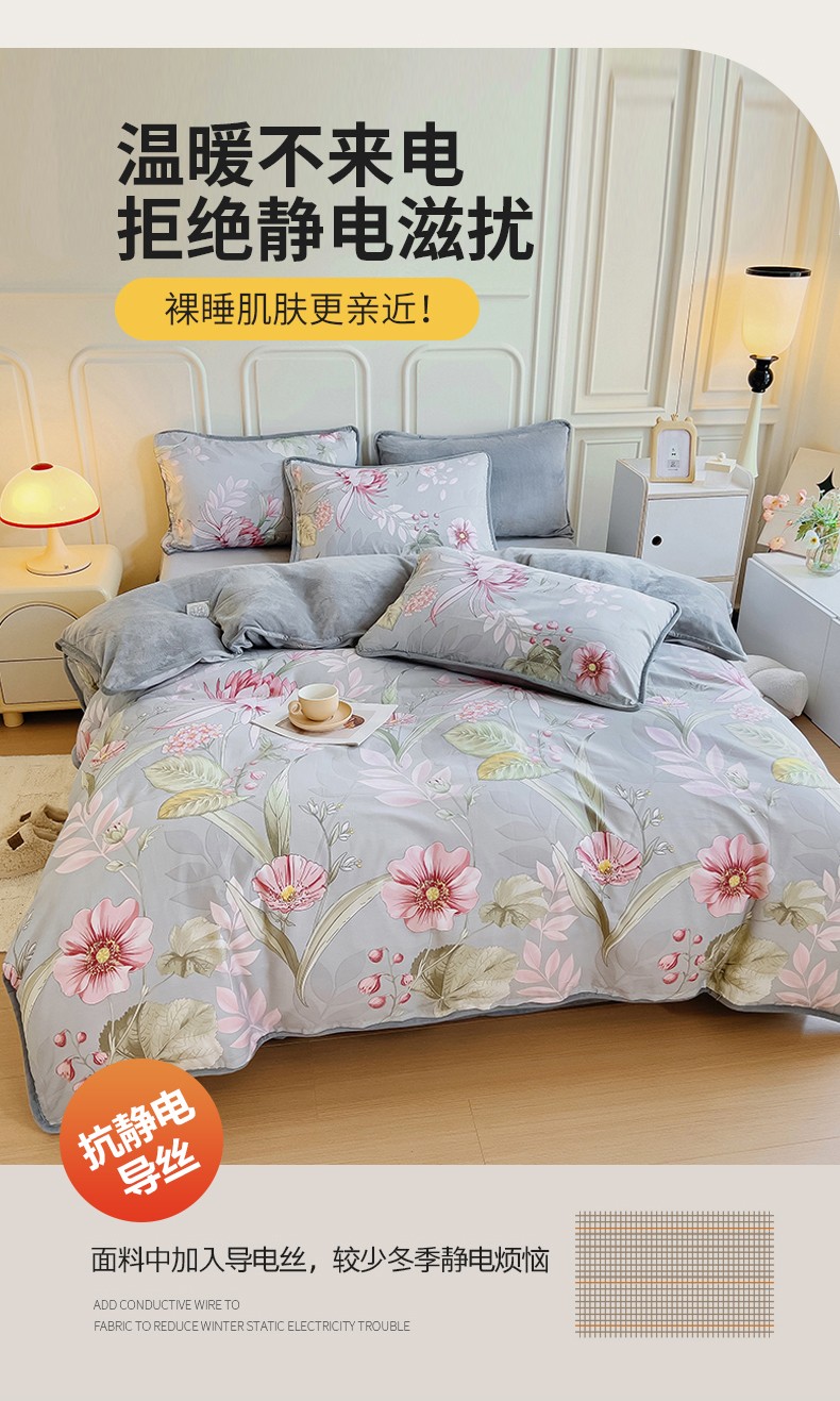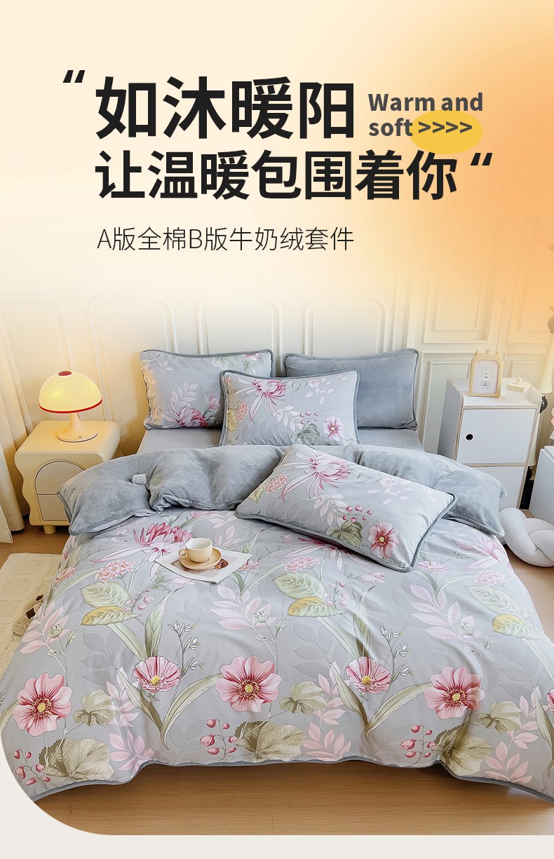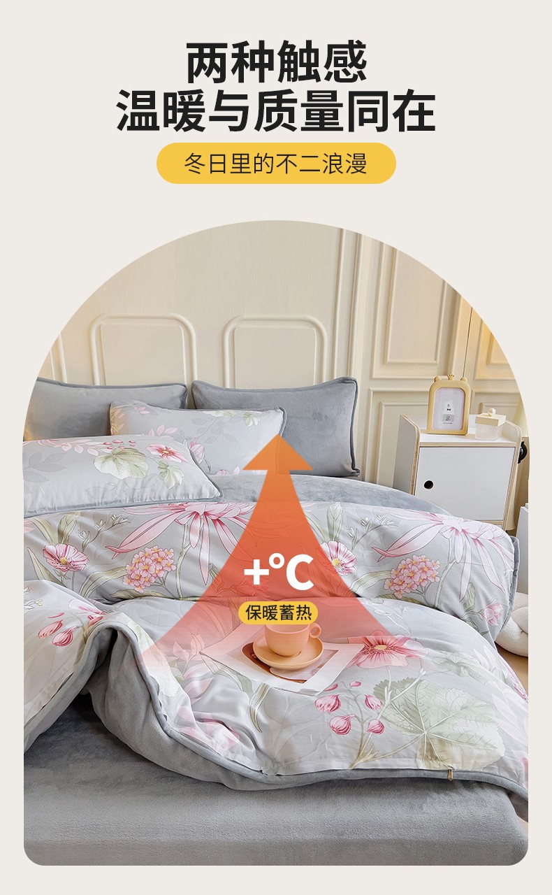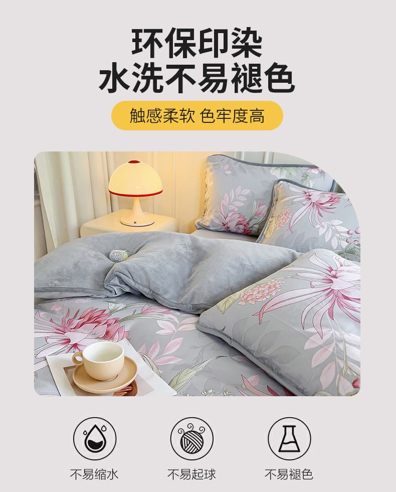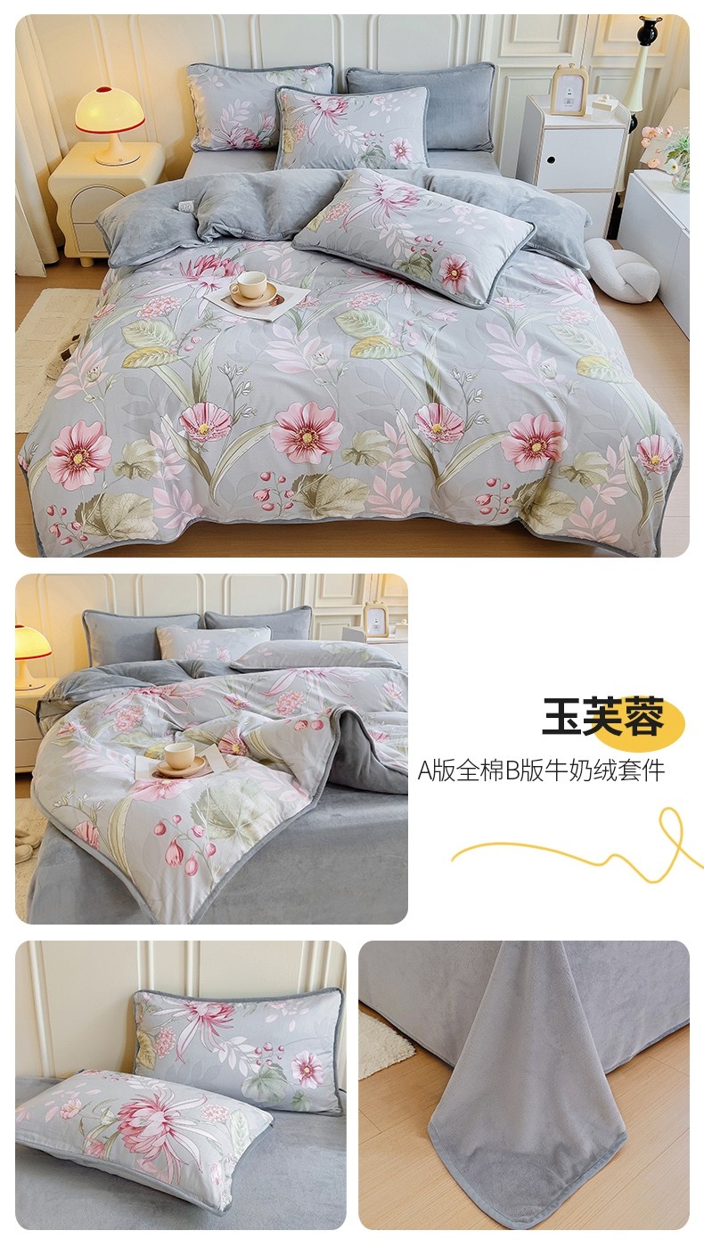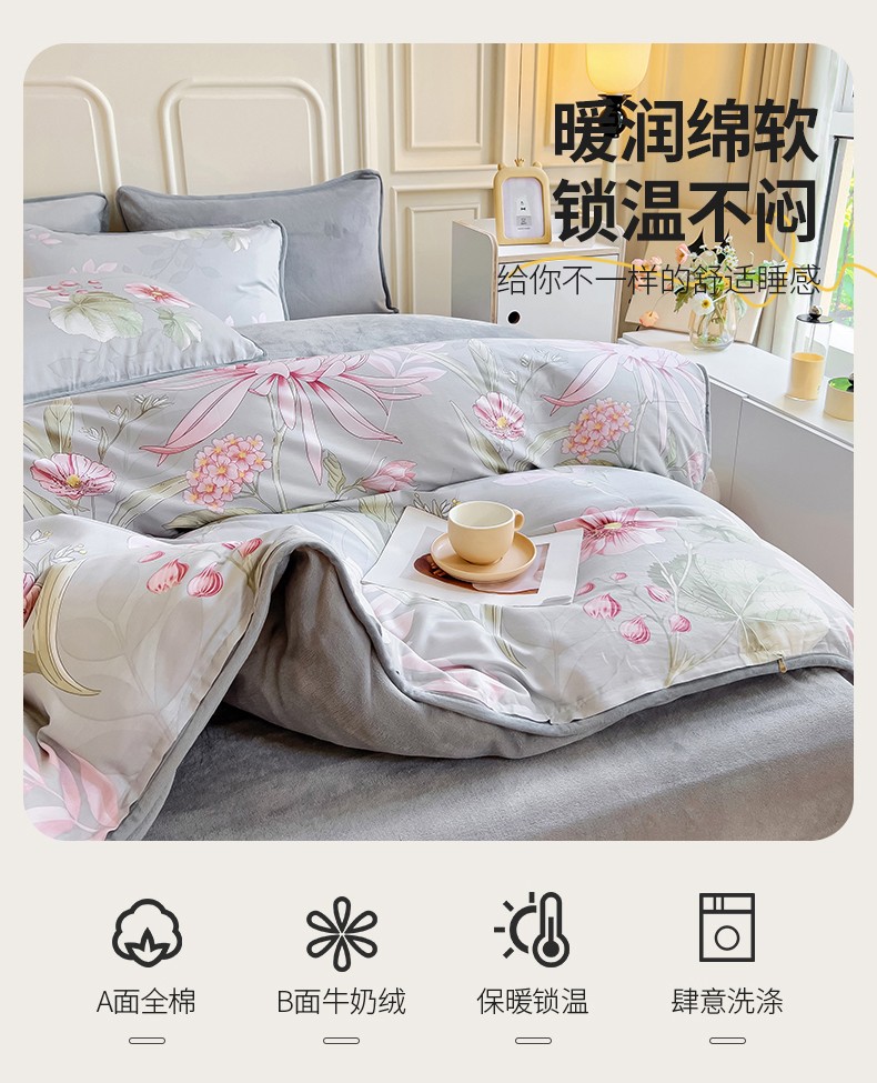 当前位置: 91家纺网 > 商品网购 > 床品套件 > 四件套 > 牛奶绒四件套 > 琪琪阁 2023新款A棉B绒棉加绒牛奶绒四件套单被套 玉芙蓉