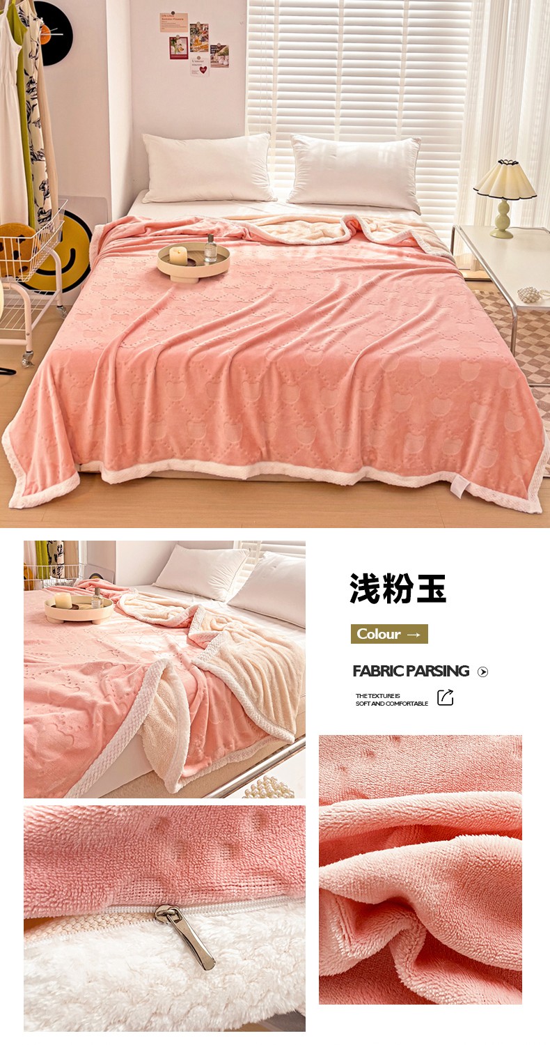 法澳 2023新款220克牛奶绒雕花烂花毛毯休闲毯 甘比熊-浅粉玉