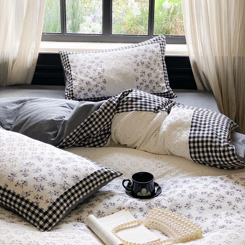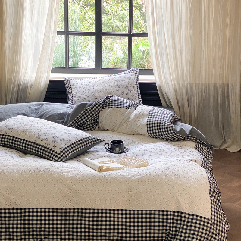 (总)旷野 2024双层纱碎花蕾丝拼接款四件套--柏林花事,柏林花事-粉,柏林花事-黑,柏林花事-奶咖