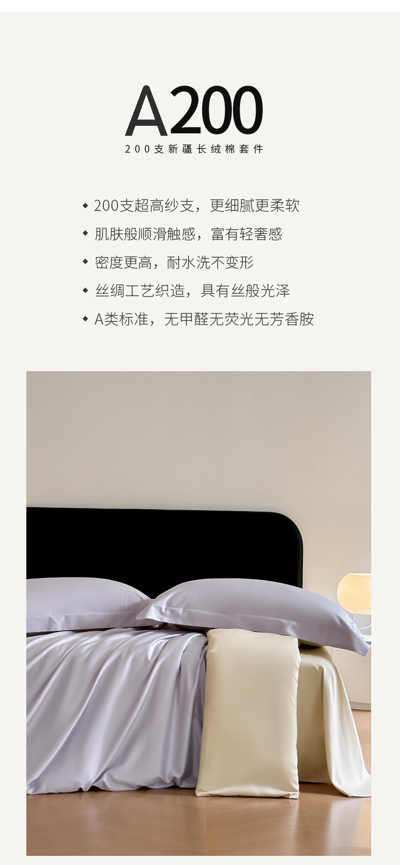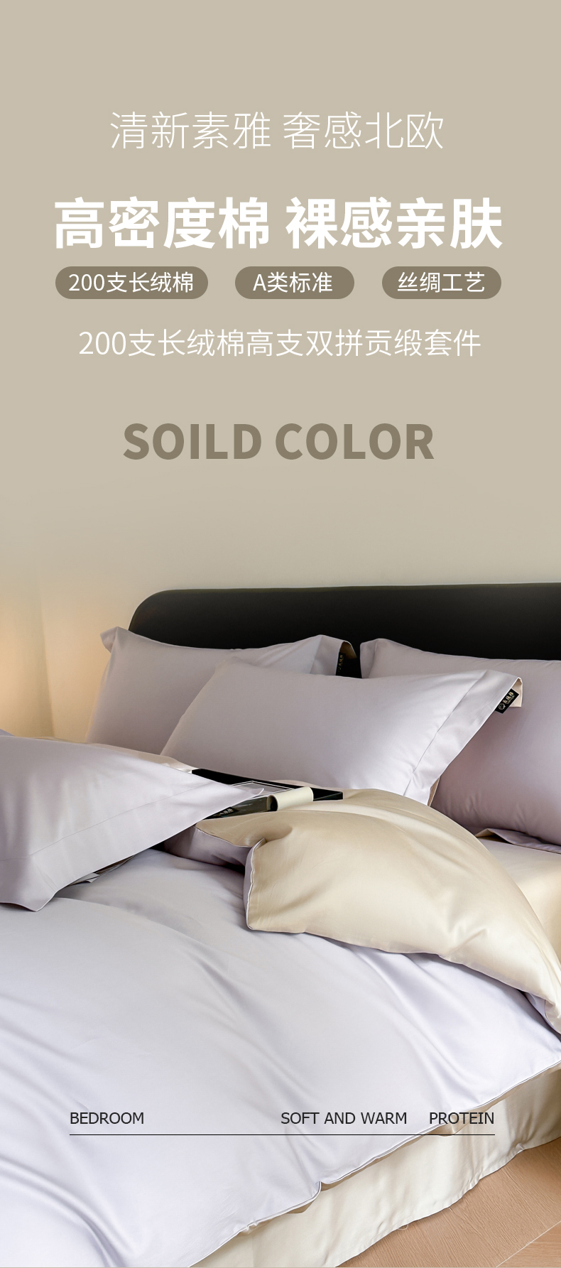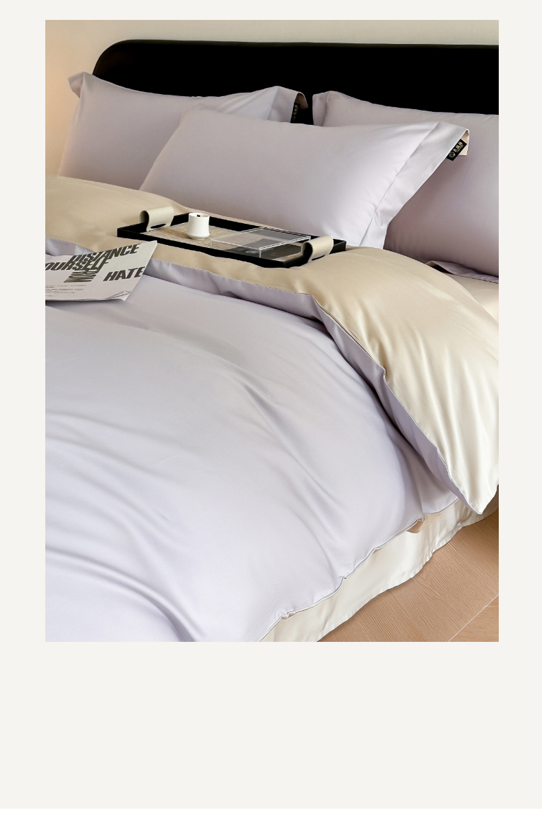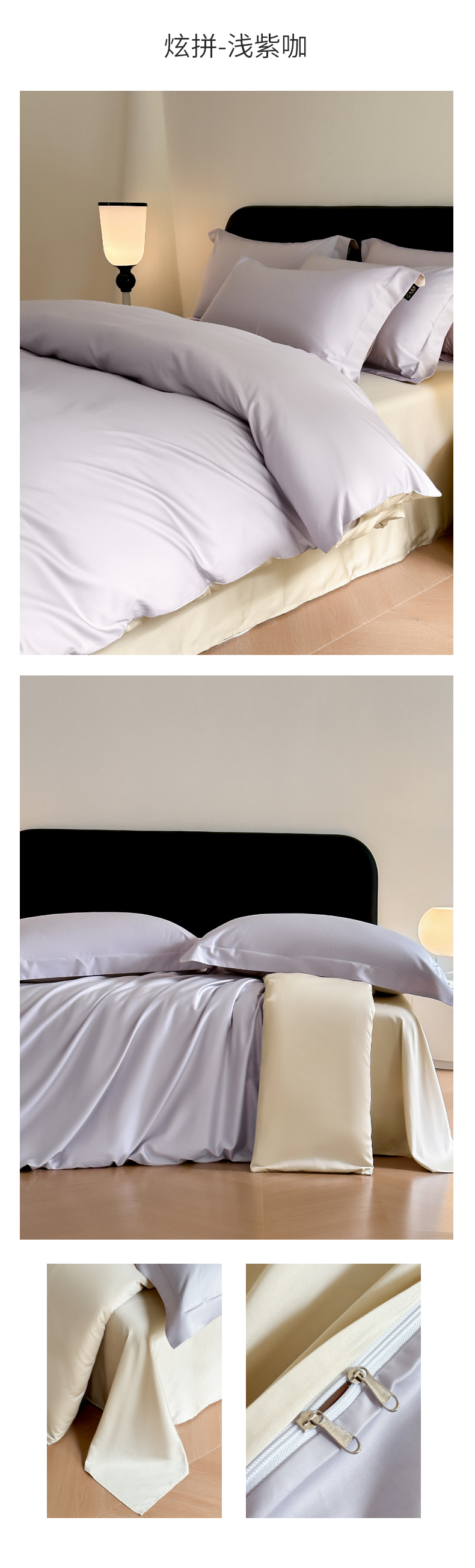 商品名称:618家纺2023新款A类50S100支长绒棉全棉双拼炫拼系列四件套 炫拼-浅紫咖
