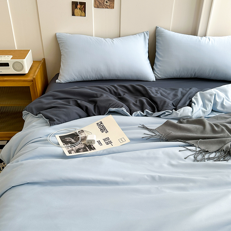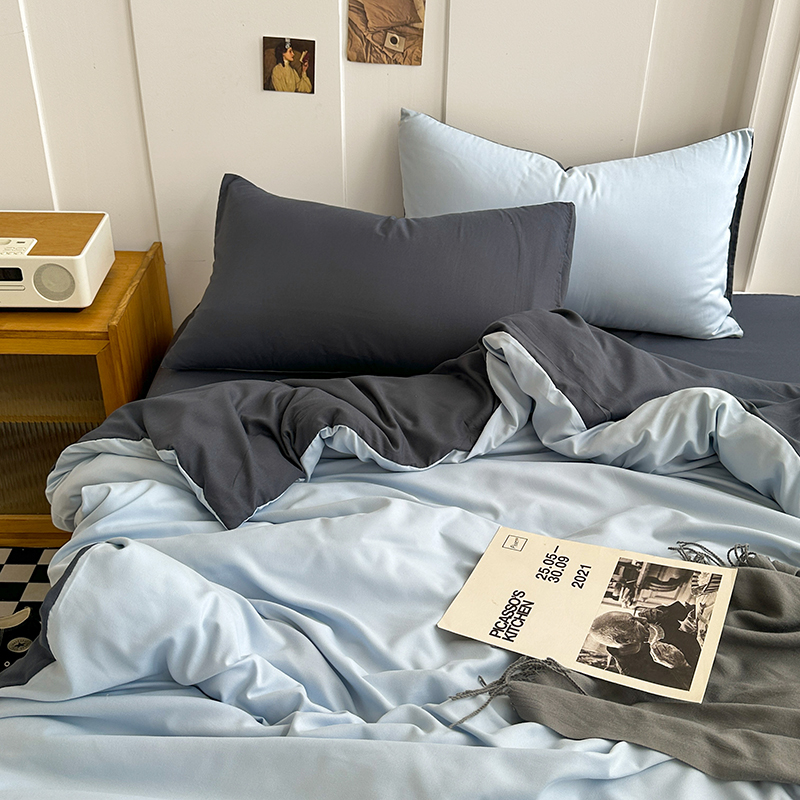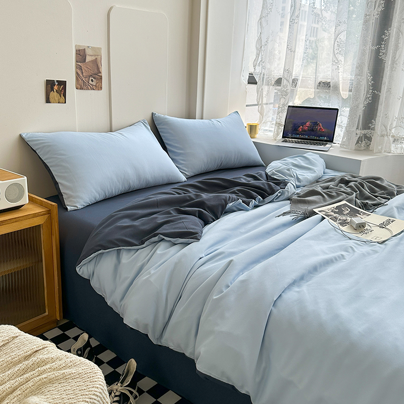 当前位置: 91家纺网 > 商品网购 > 床品套件 > 四件套 > 全棉普通四件套 > 优迈 新款纯色双拼水洗棉亲肤磨毛四件套-单被套枕套床笠双拼-海蓝灰