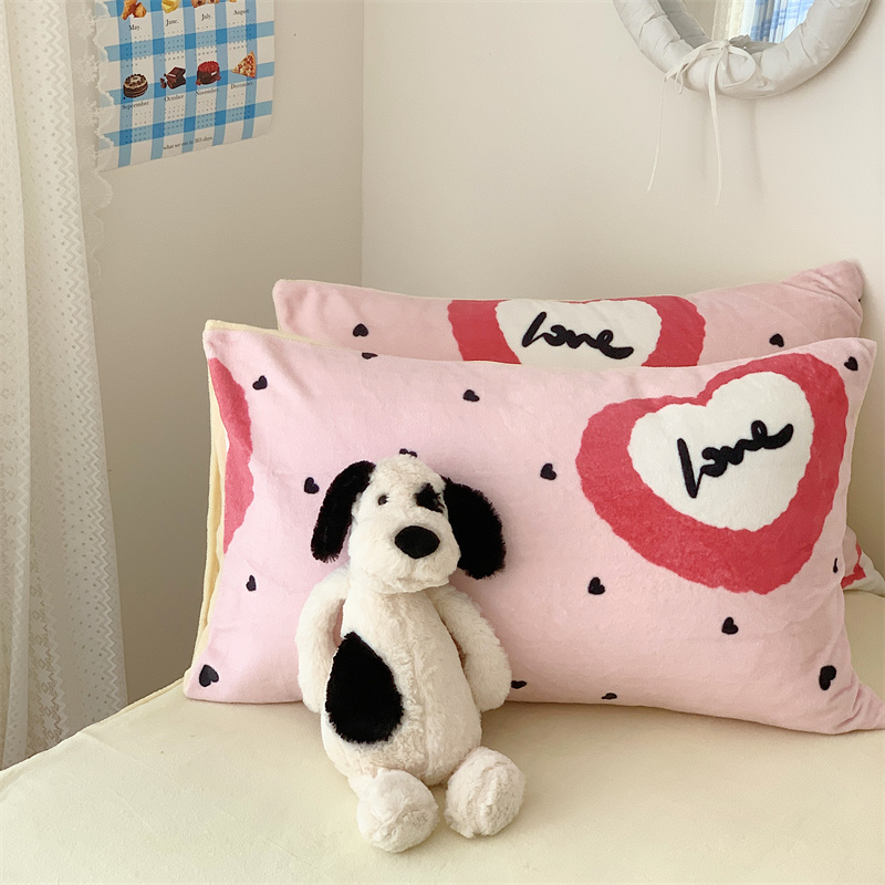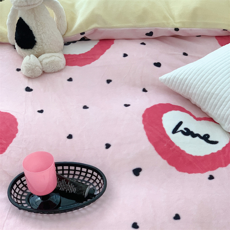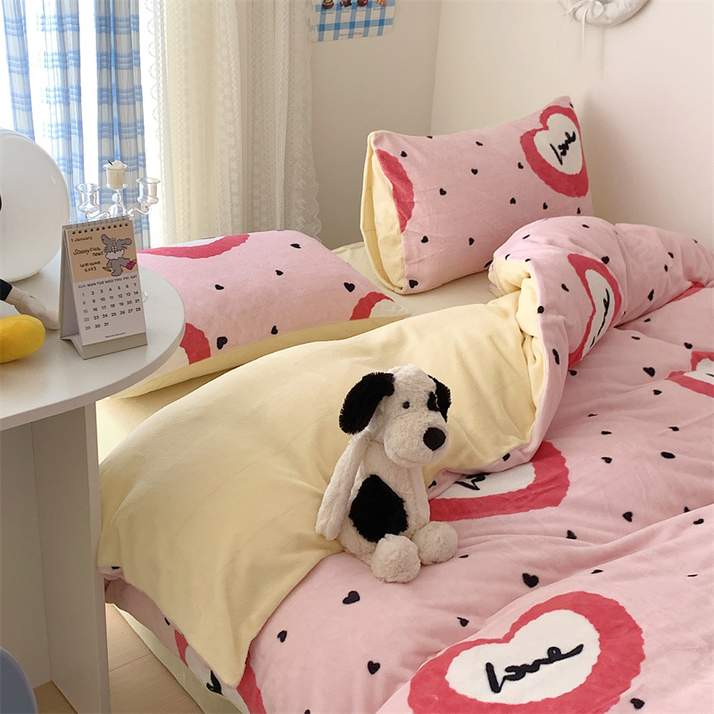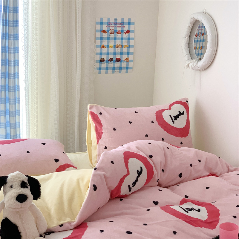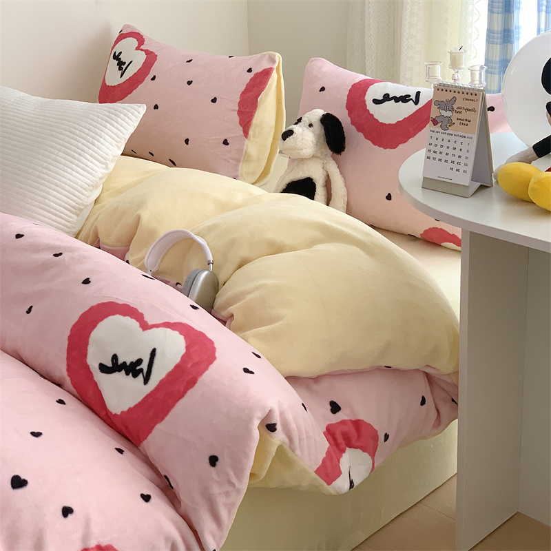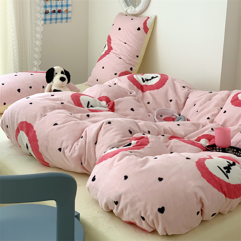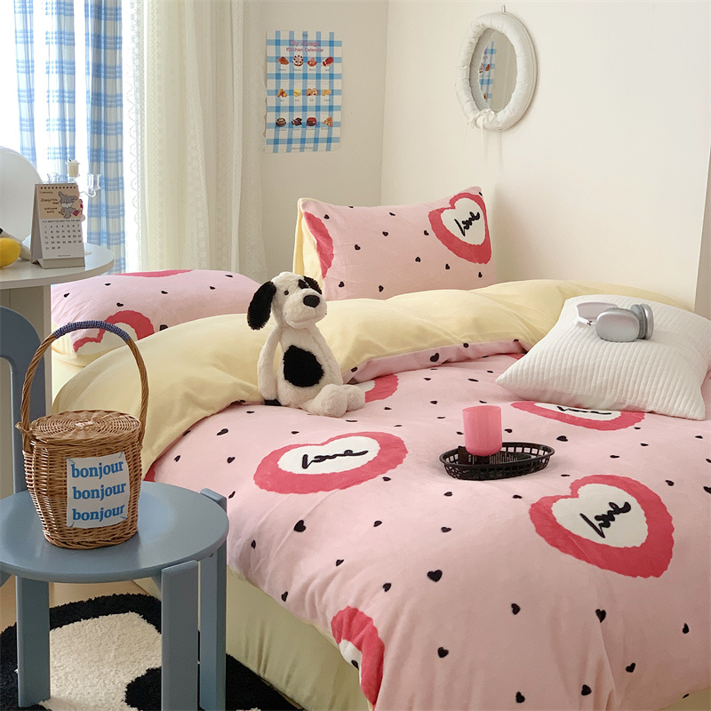 美乐迪家纺 2023秋冬新款保暖牛奶绒四件套 粉爱心