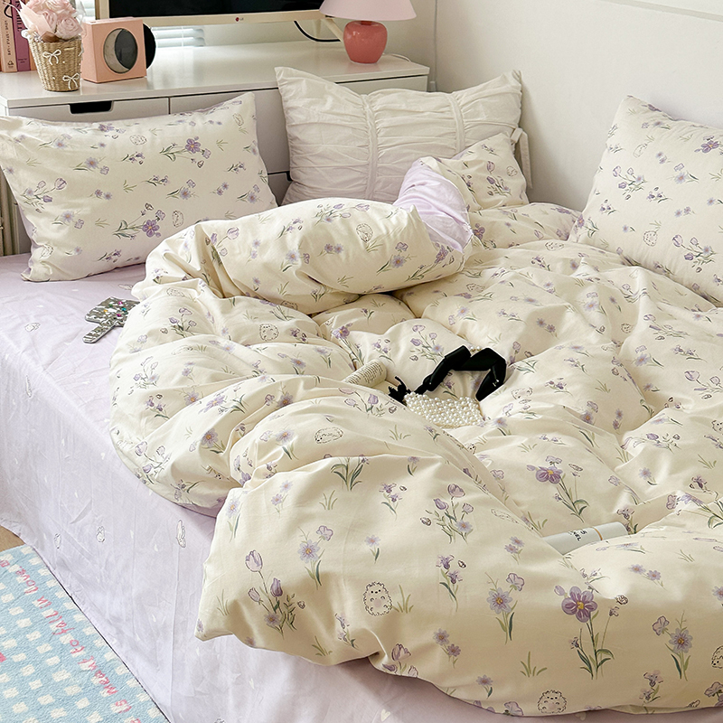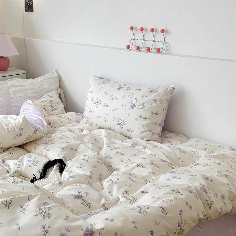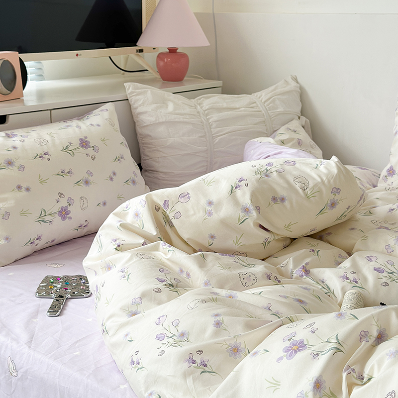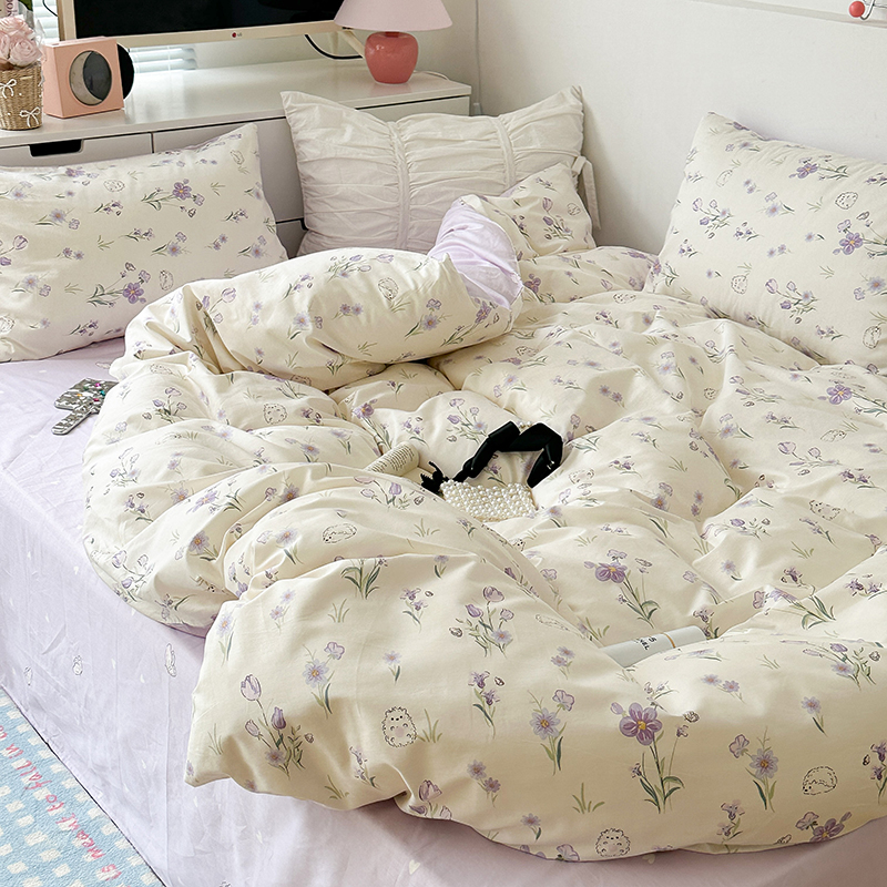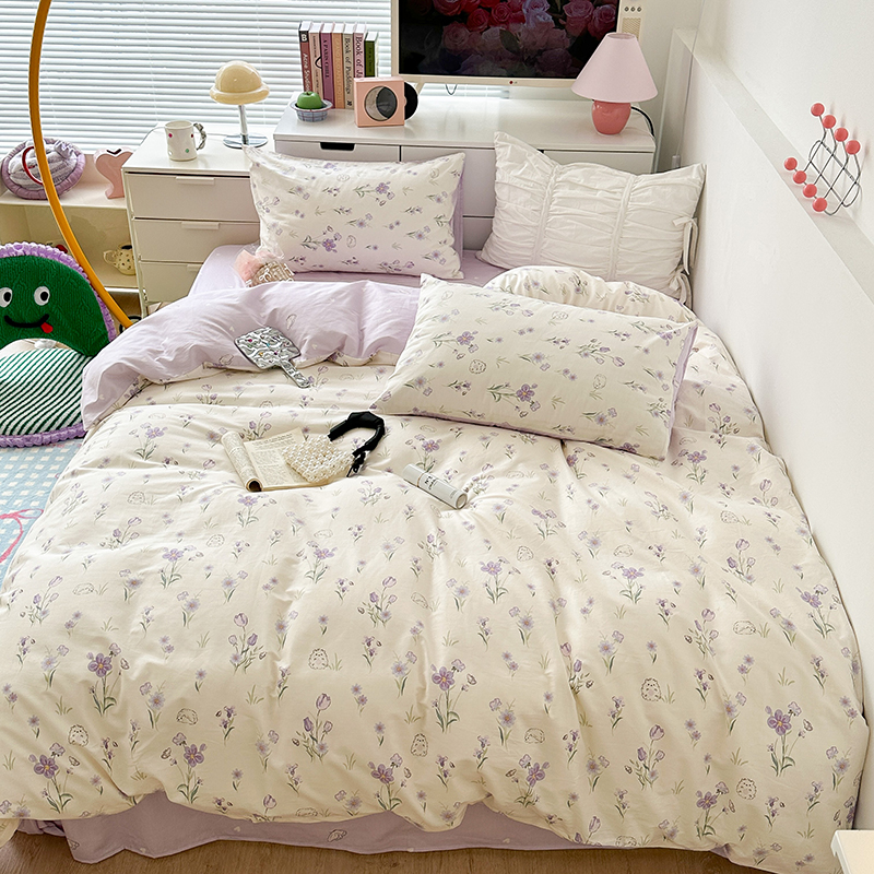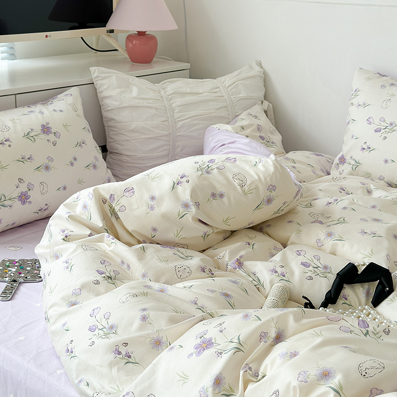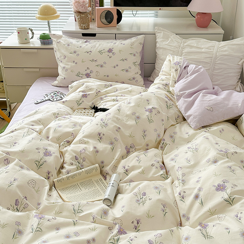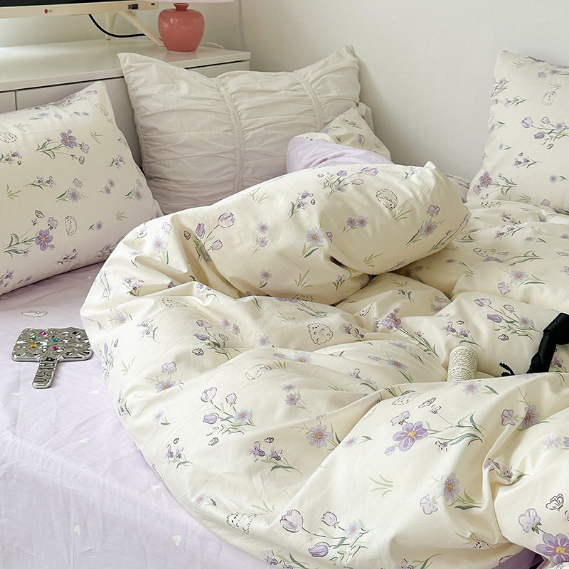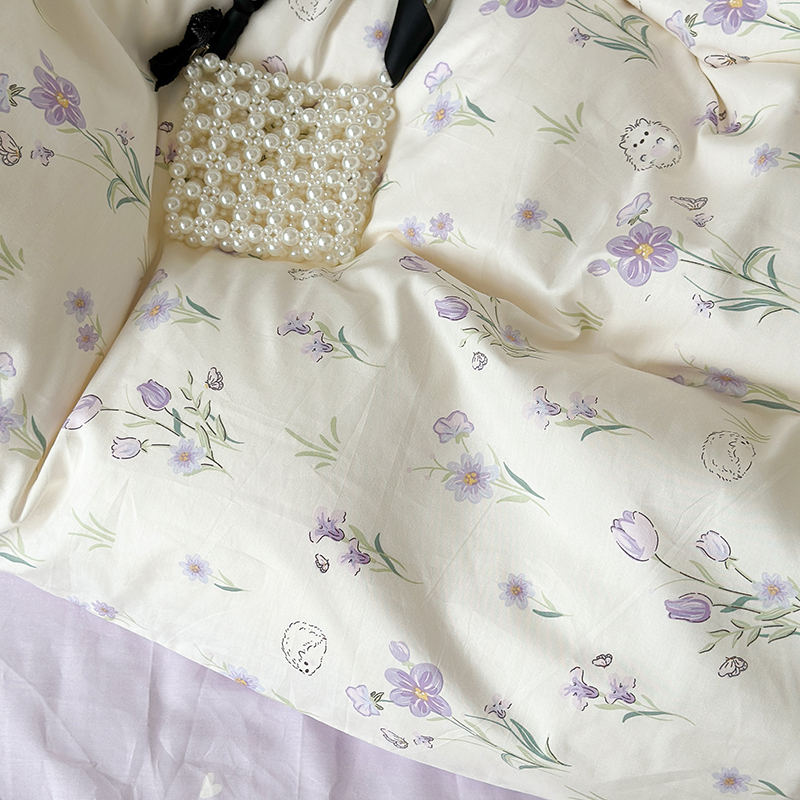 商品名称:昔可家纺 2023新款全棉治愈风小碎花四件套 紫色秘境花语