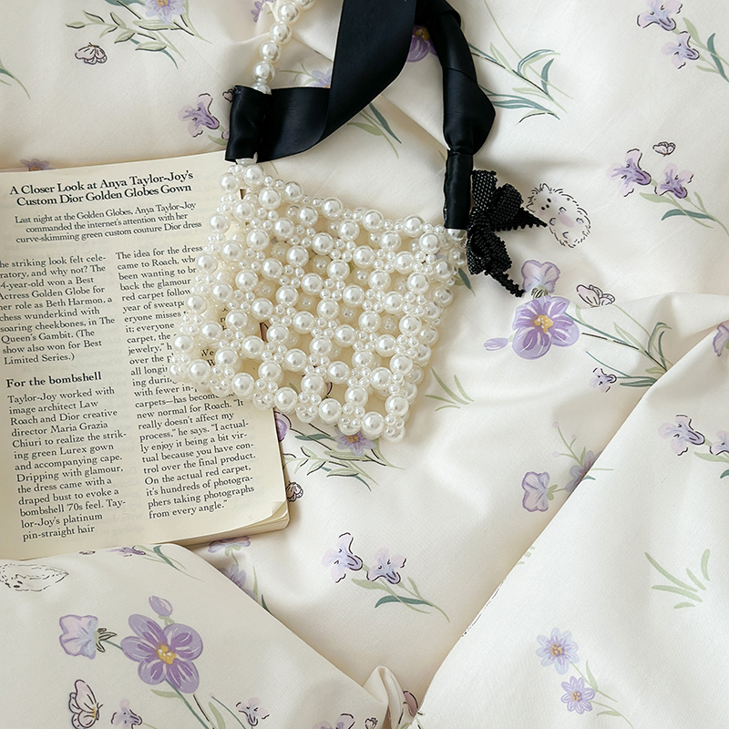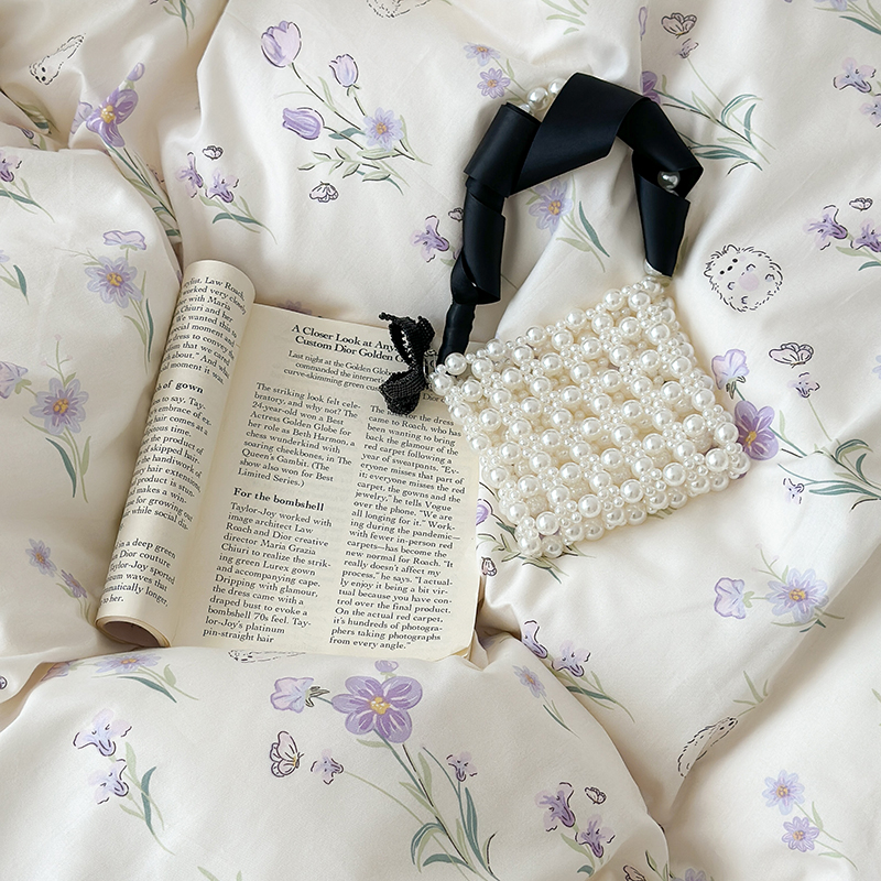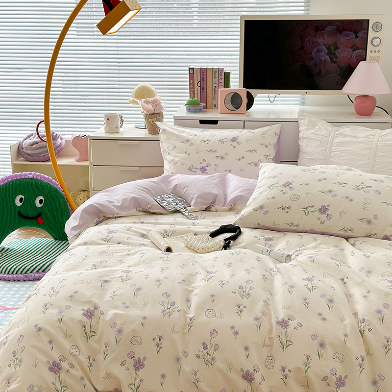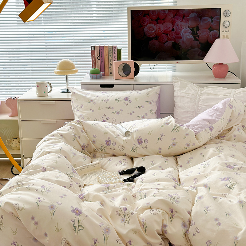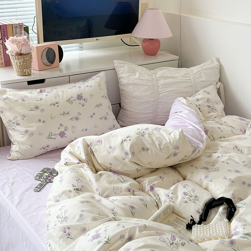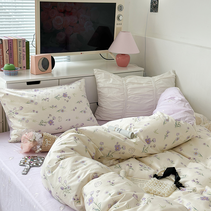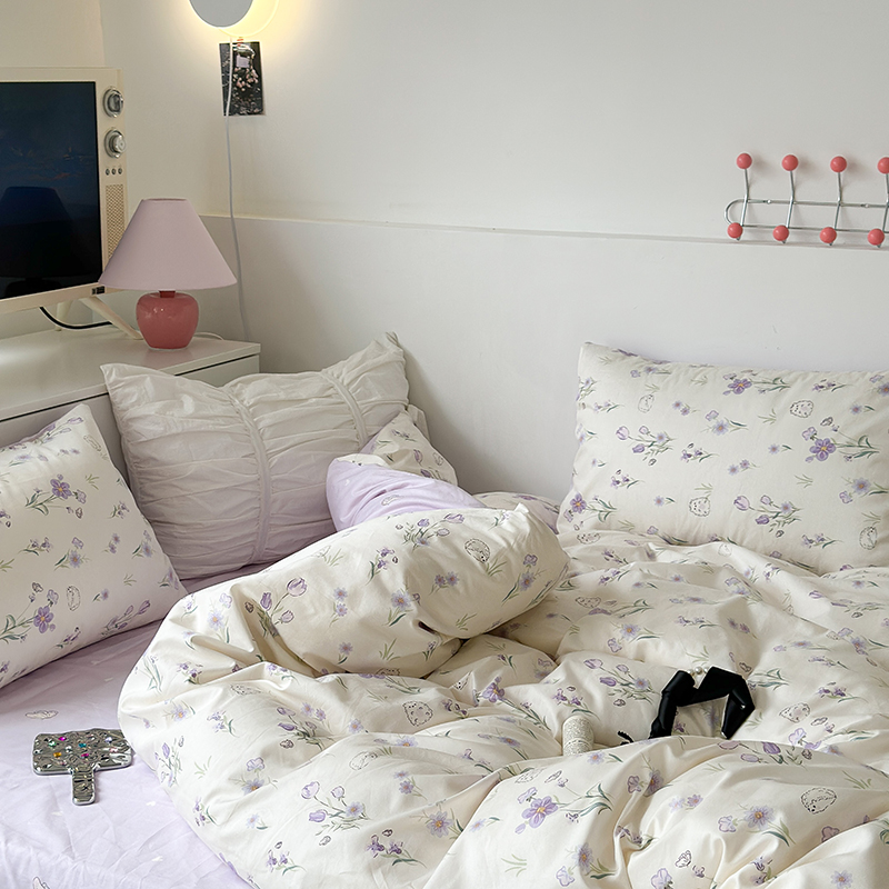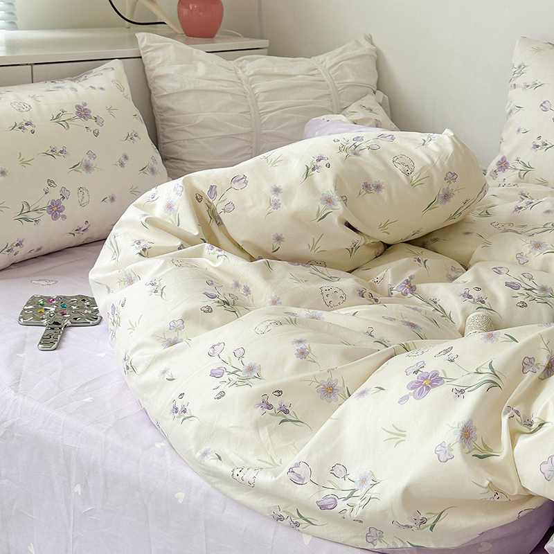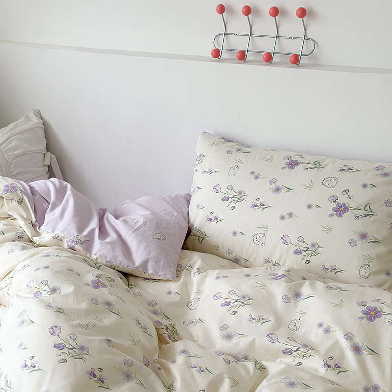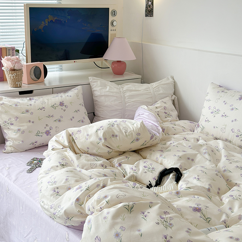 商品名称:昔可家纺 2023新款全棉治愈风小碎花四件套 紫色秘境花语
