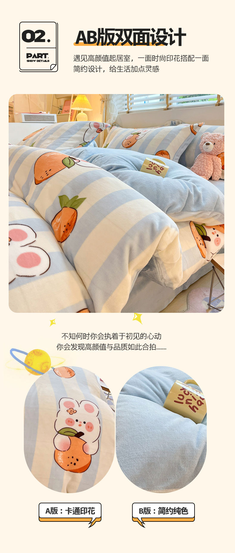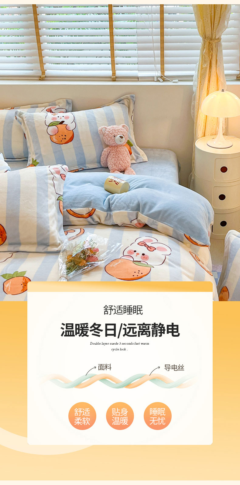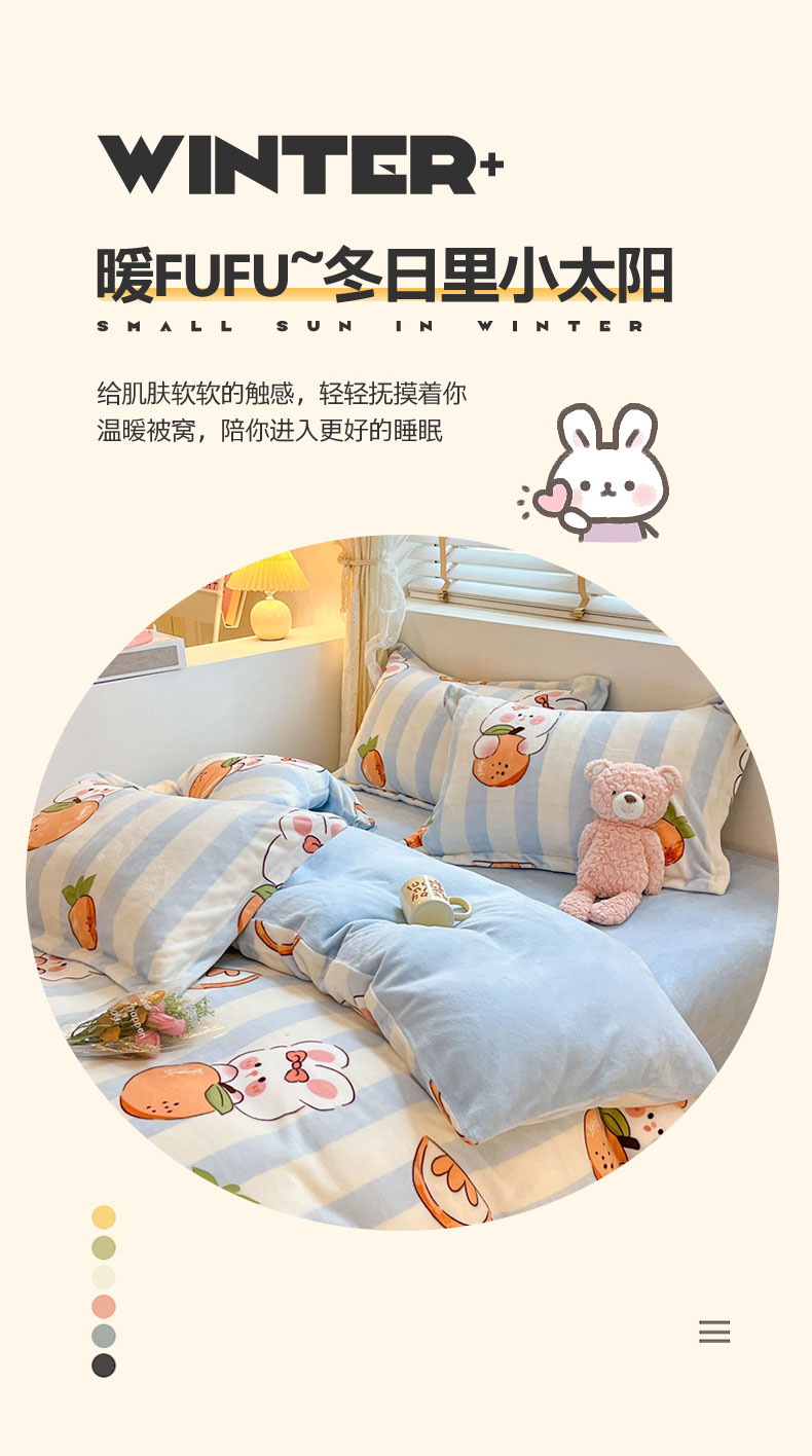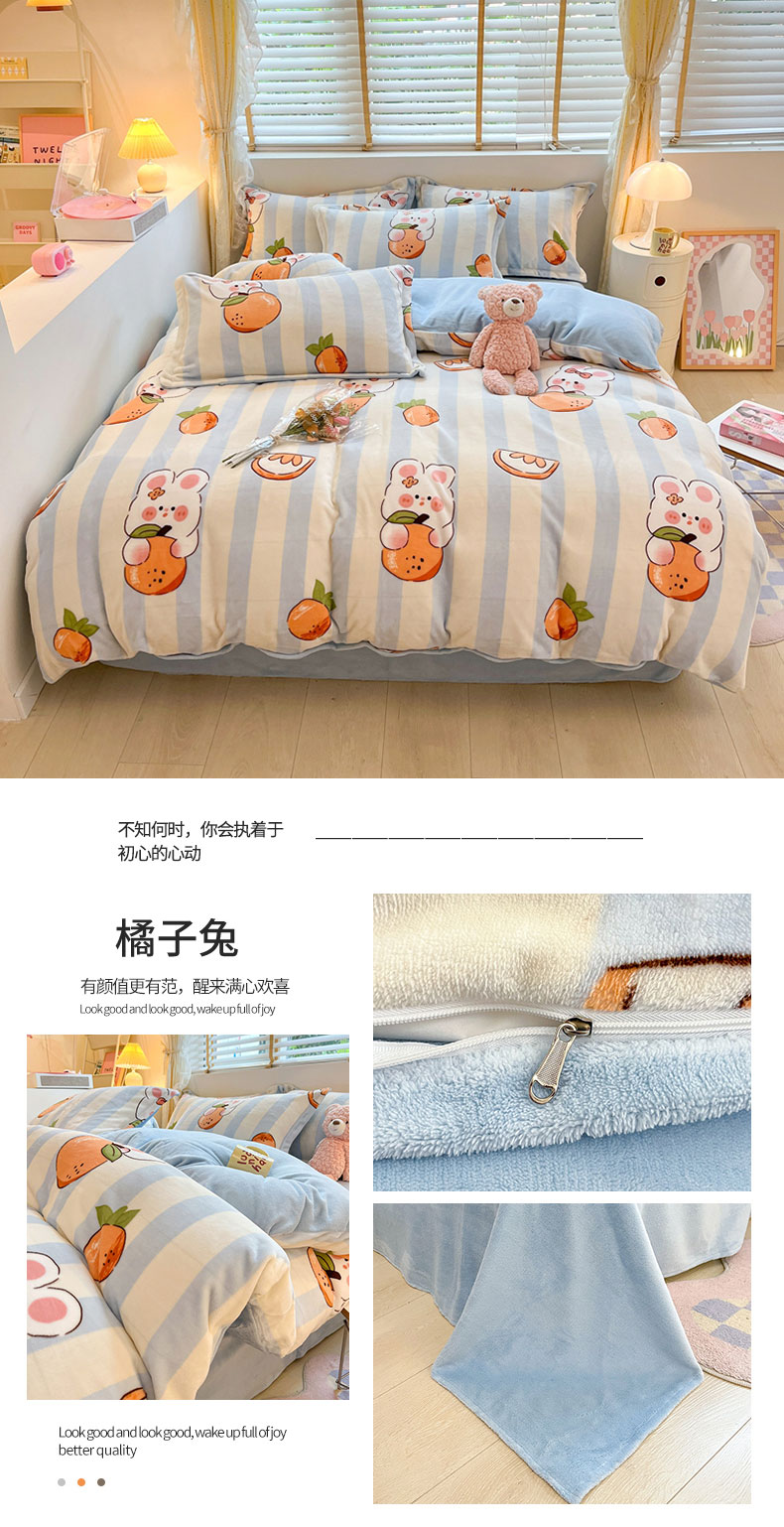 商品名称:康纳利 2023新款印花牛奶绒单被套 橘子兔