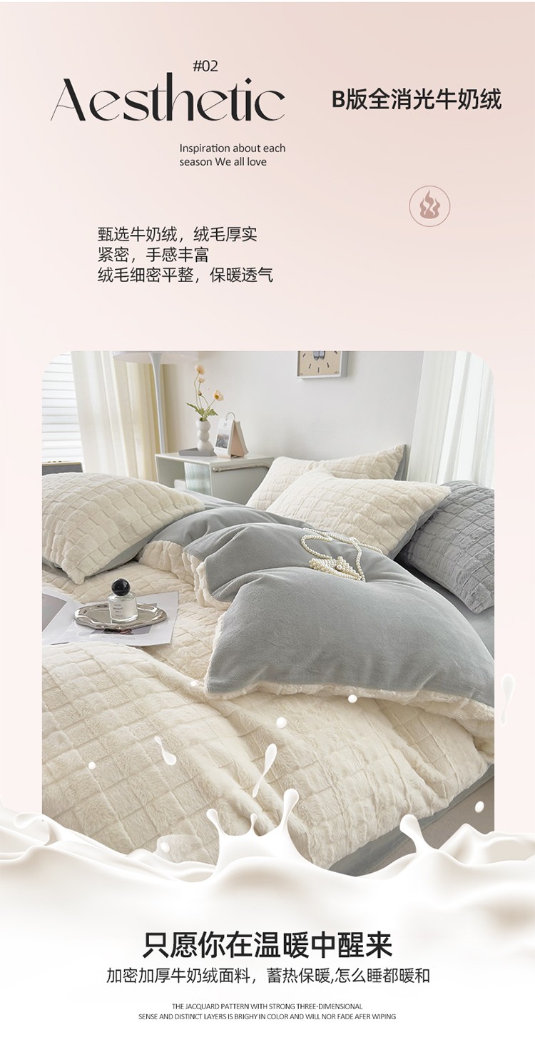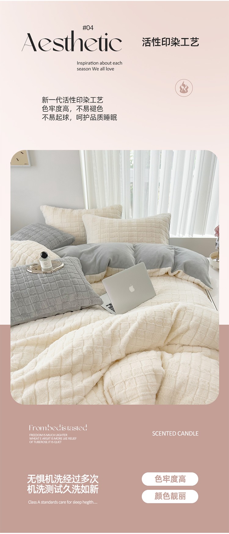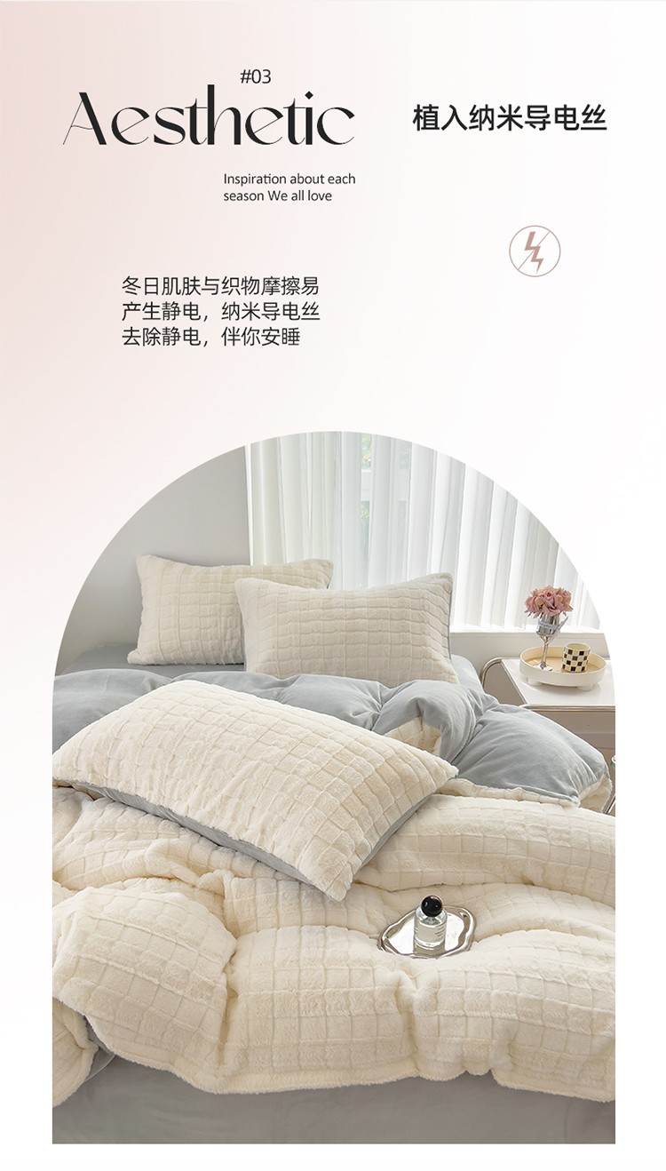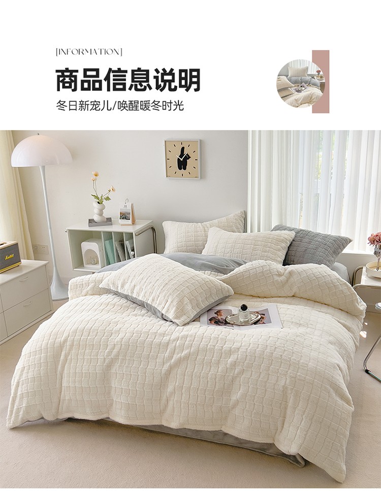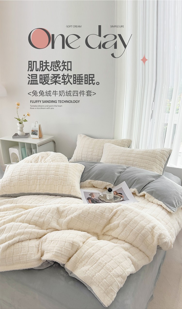 商品名称:欧冠 2023秋冬320克兔兔绒四件套 奶白灰