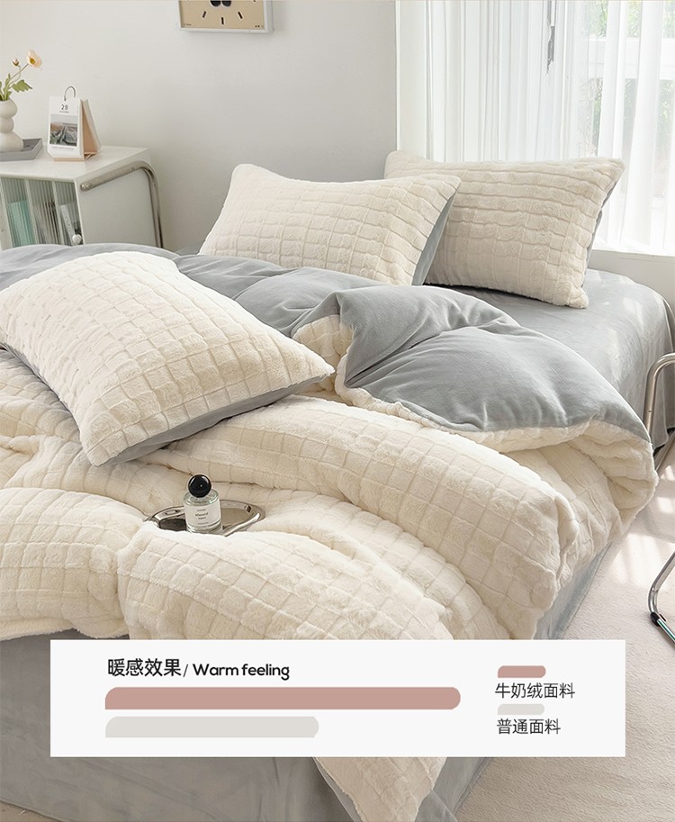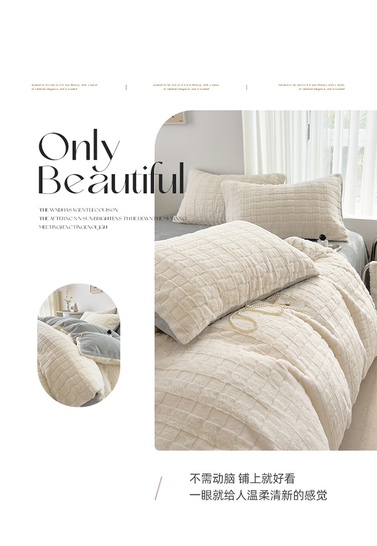 欧冠 2023秋冬320克兔兔绒四件套 奶白灰