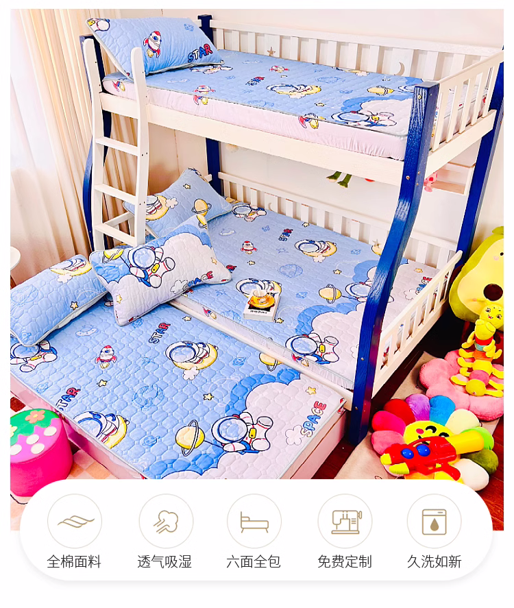 • 91家纺网 家纺一手货源 找家纺 小虾米 2023新款全棉卡通上下床夹棉系列床笠 探索星球