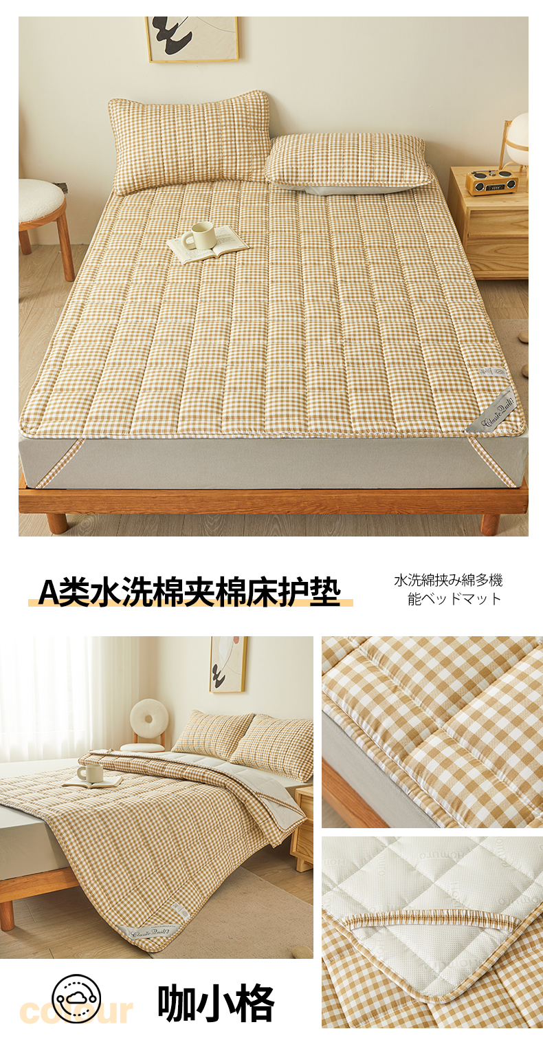 商品名称:满羽家纺 2023新款加厚水洗棉夹棉床护垫床垫 咖小格