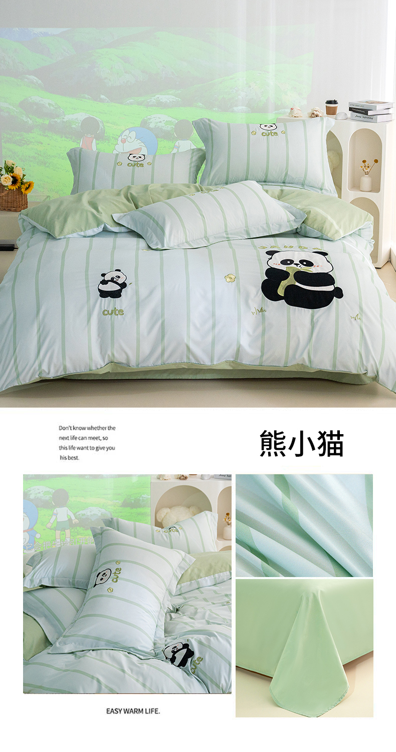 商品名称:栩裕纺织 2025新款绣花贴布绣数码印花磨毛四件套 熊小猫