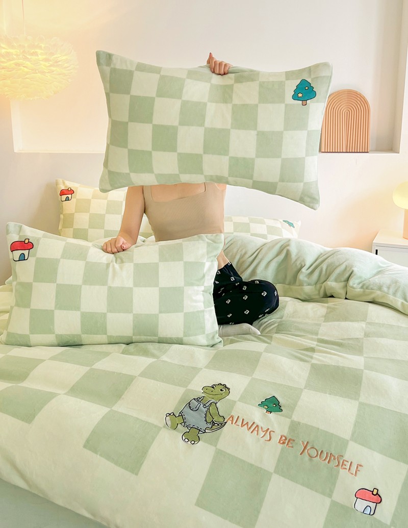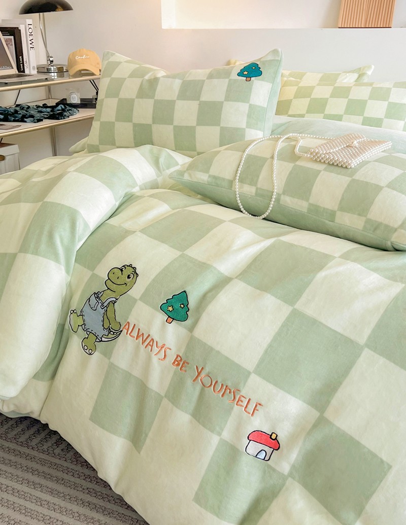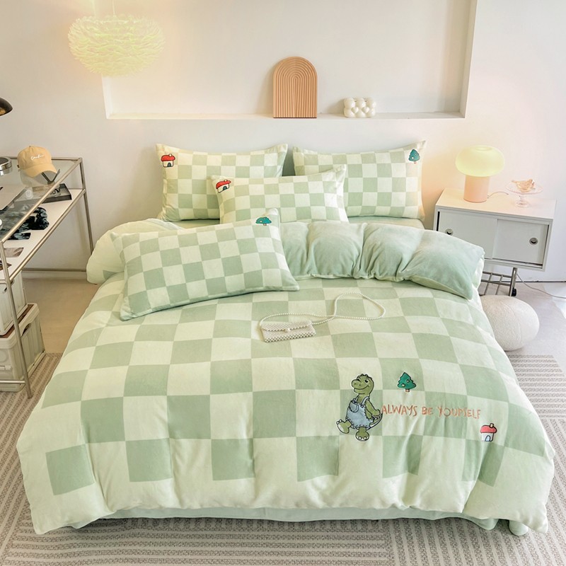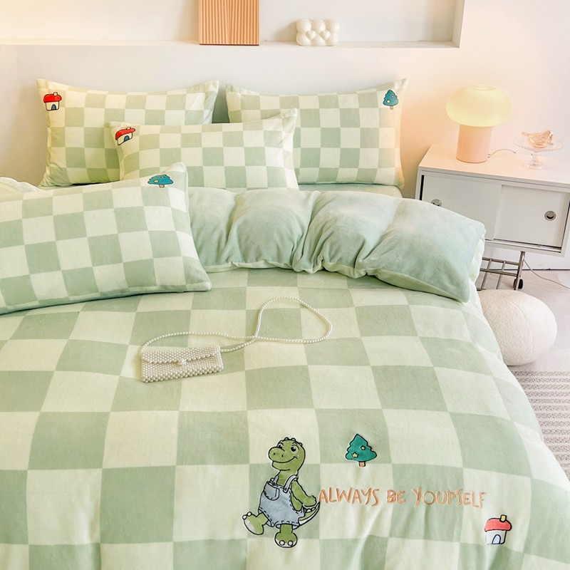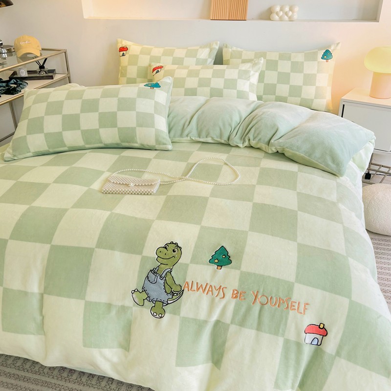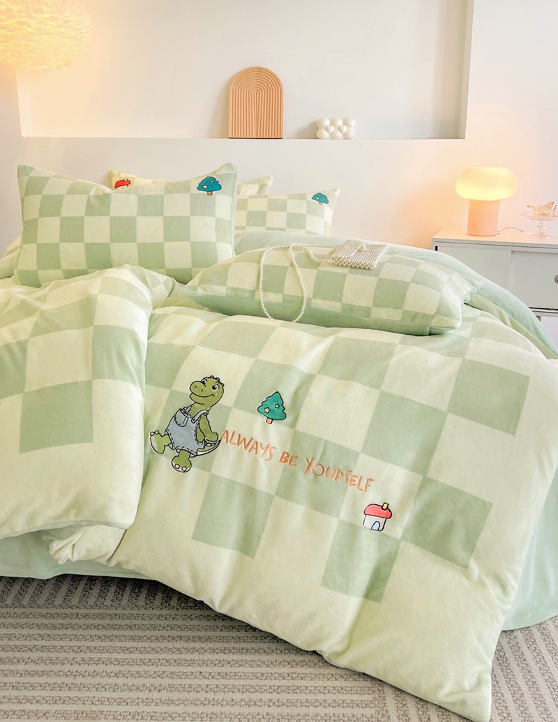 寐居家纺 2023新款ins数码印花刺绣牛奶绒四件套 恐龙日记-刺绣款