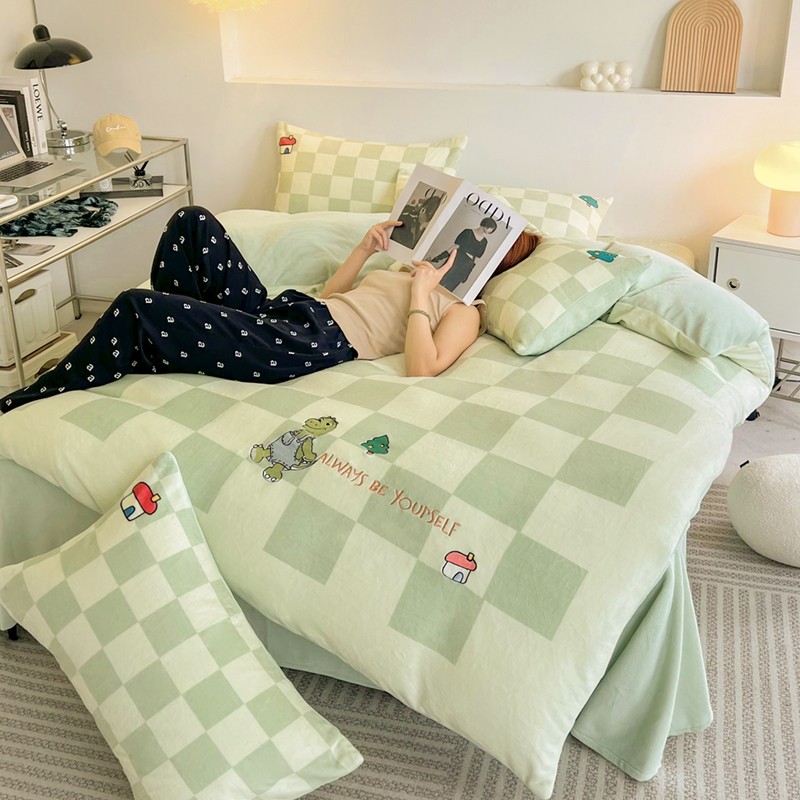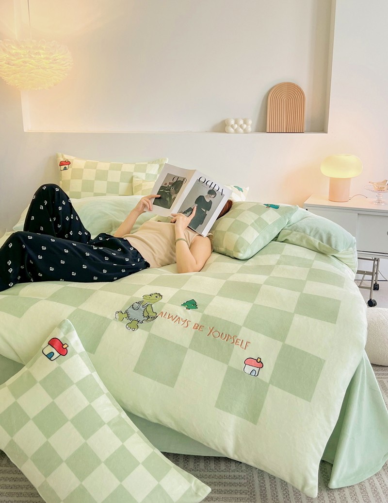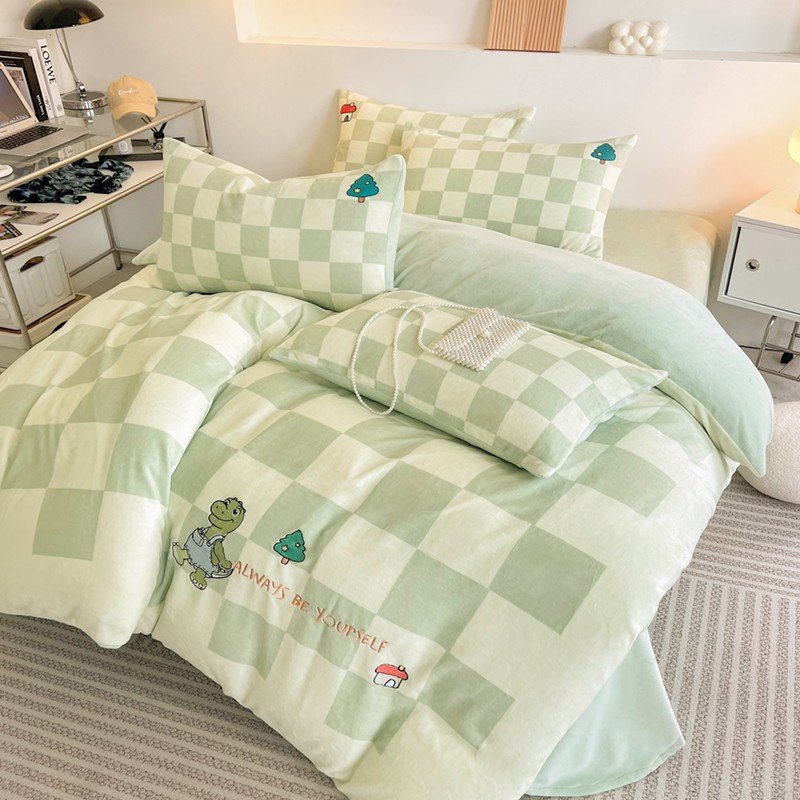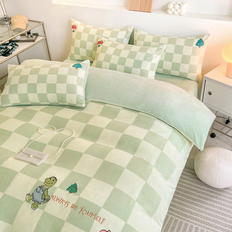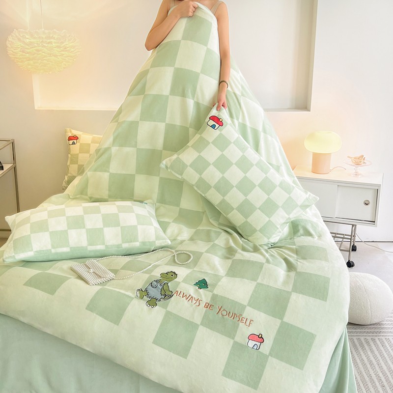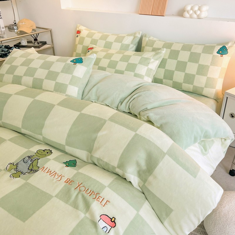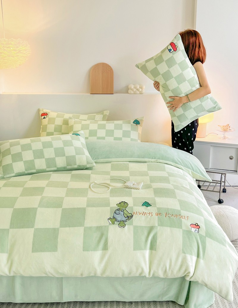寐居家纺 2023新款ins数码印花刺绣牛奶绒四件套 恐龙日记-刺绣款