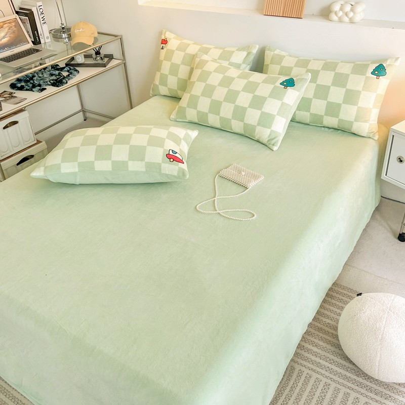 (总)寐居家纺 2025新款毛巾绣牛奶绒床笠,星伴小象,格纹萌犬,红果果,萌兔有约,年年有鱼,甜心小骑,组合