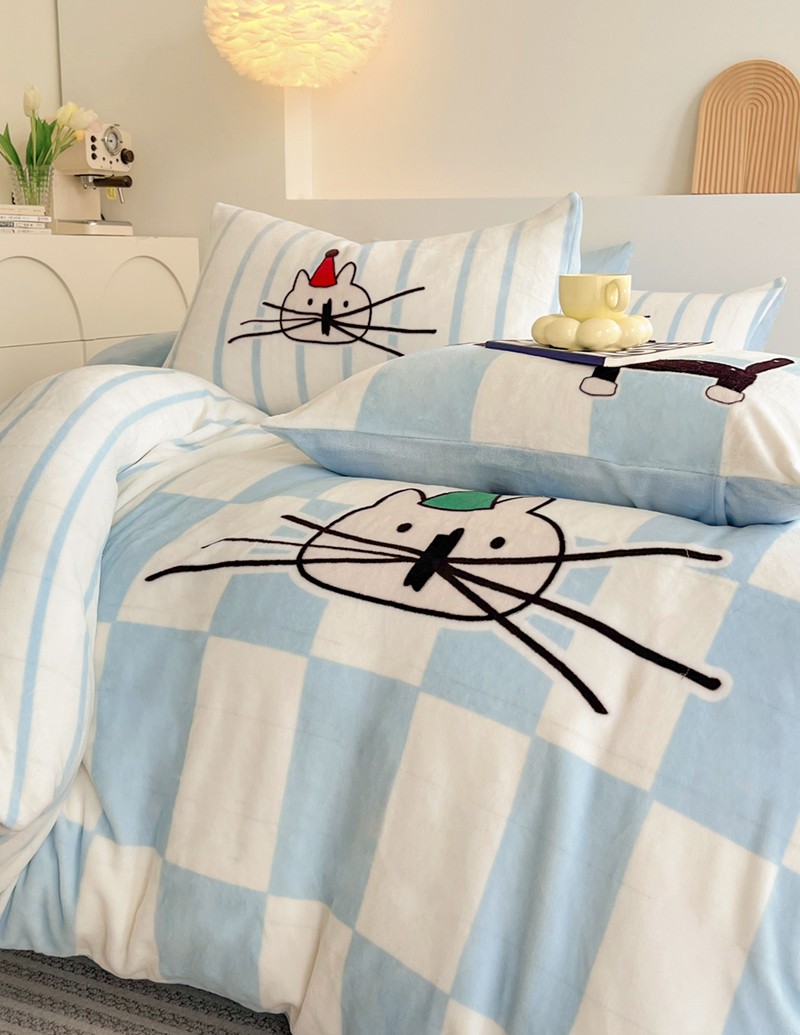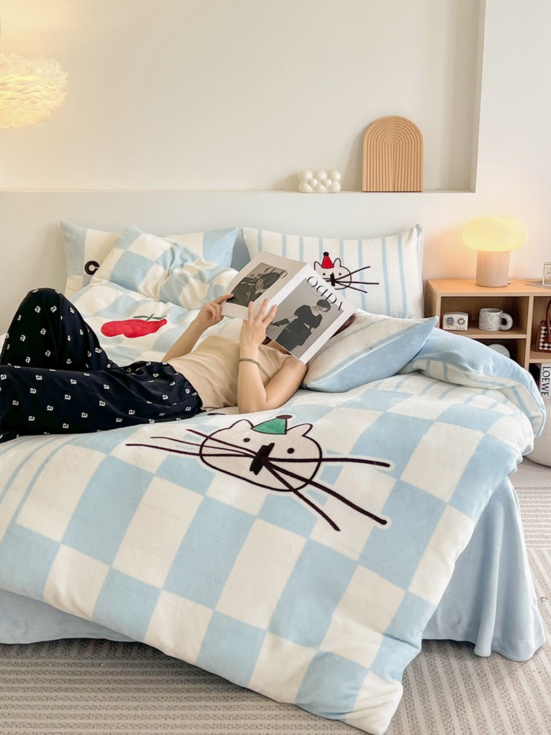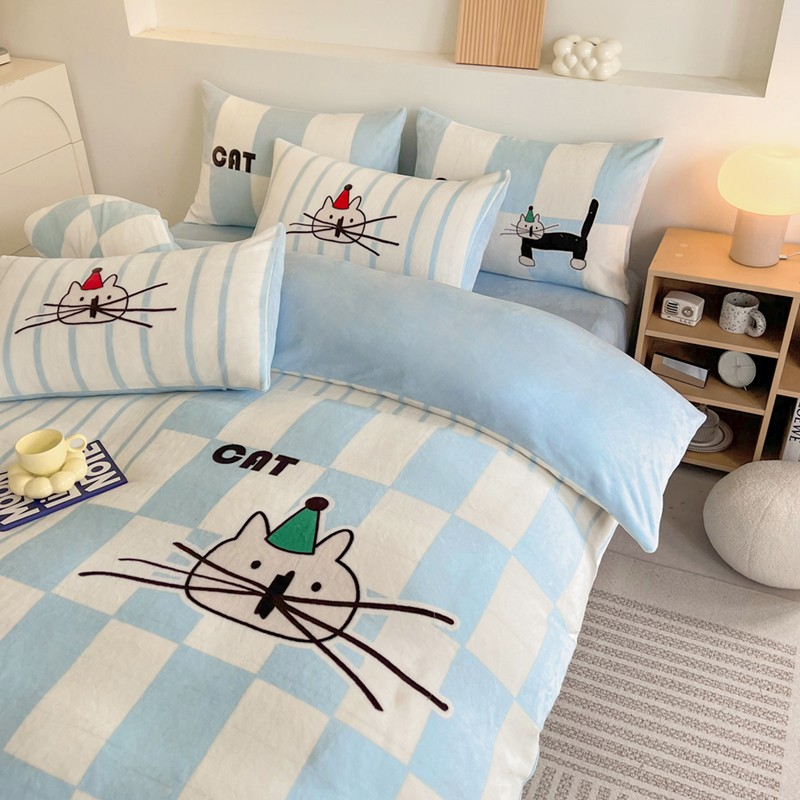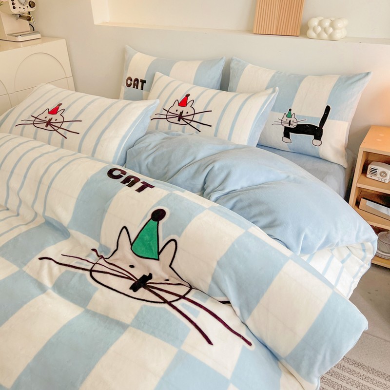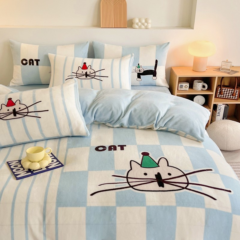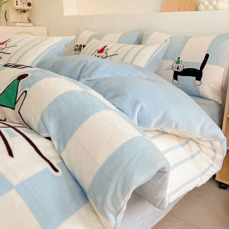 寐居家纺 2023新款ins数码印花牛奶绒四件套 乐町猫咪