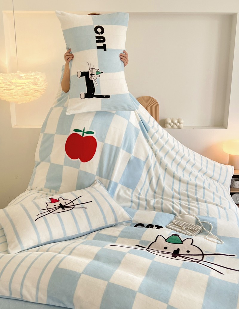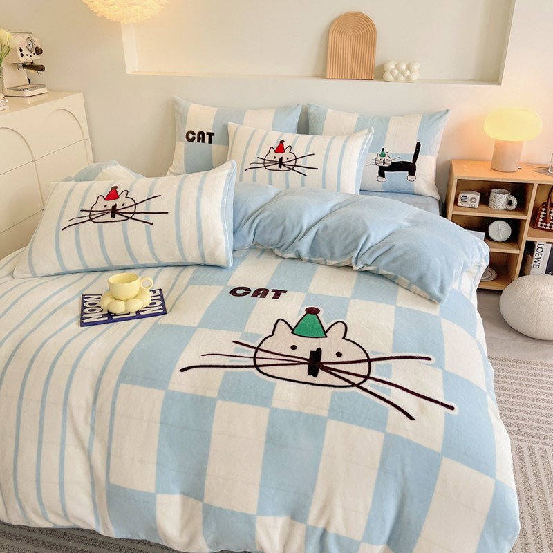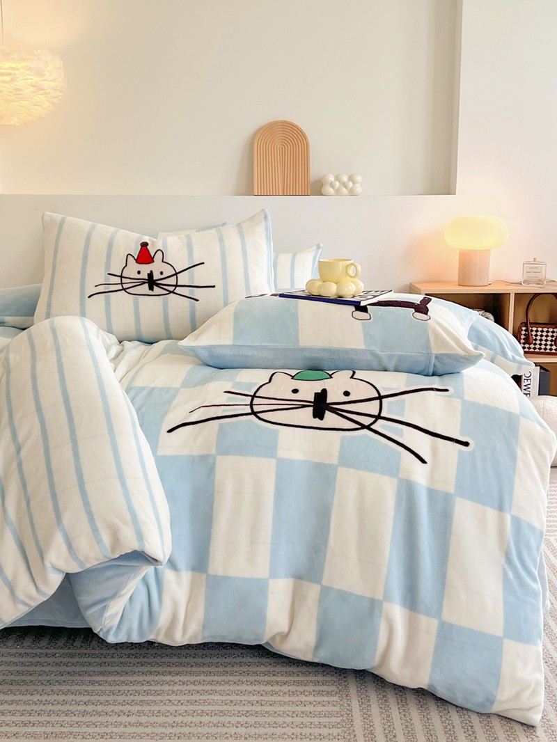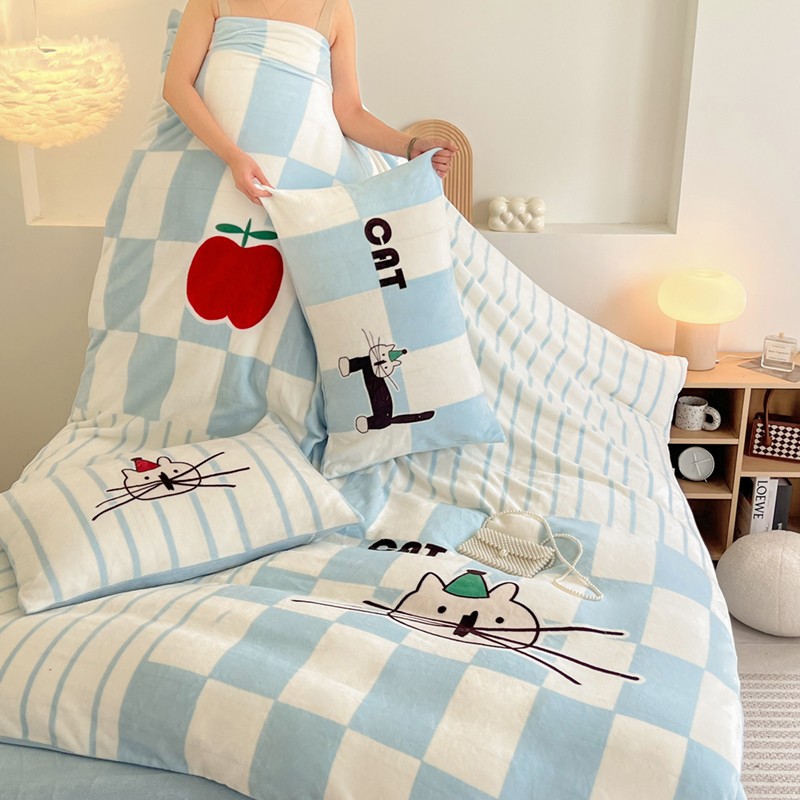 (总)寐居家纺 2025新款贴布绣高克重牛奶绒四件套,安吉拉喵,查理狗,粉糯kitty,皮皮布布
