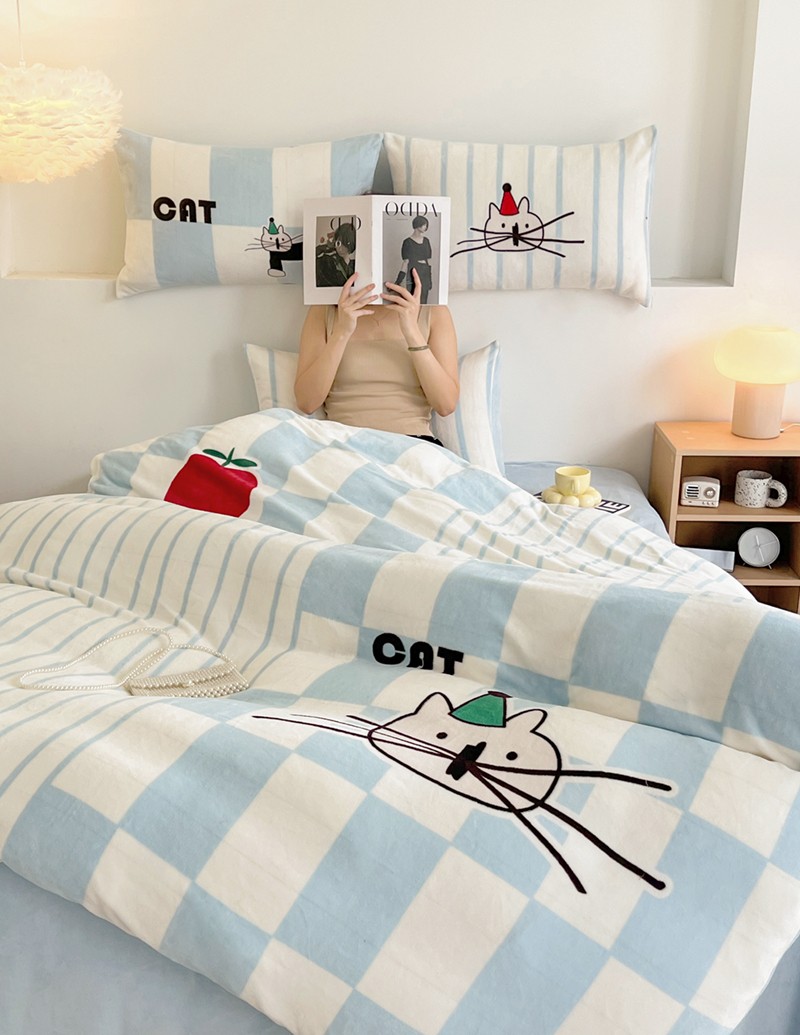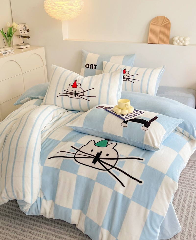 商品名称:寐居家纺 2023新款ins数码印花牛奶绒四件套 乐町猫咪