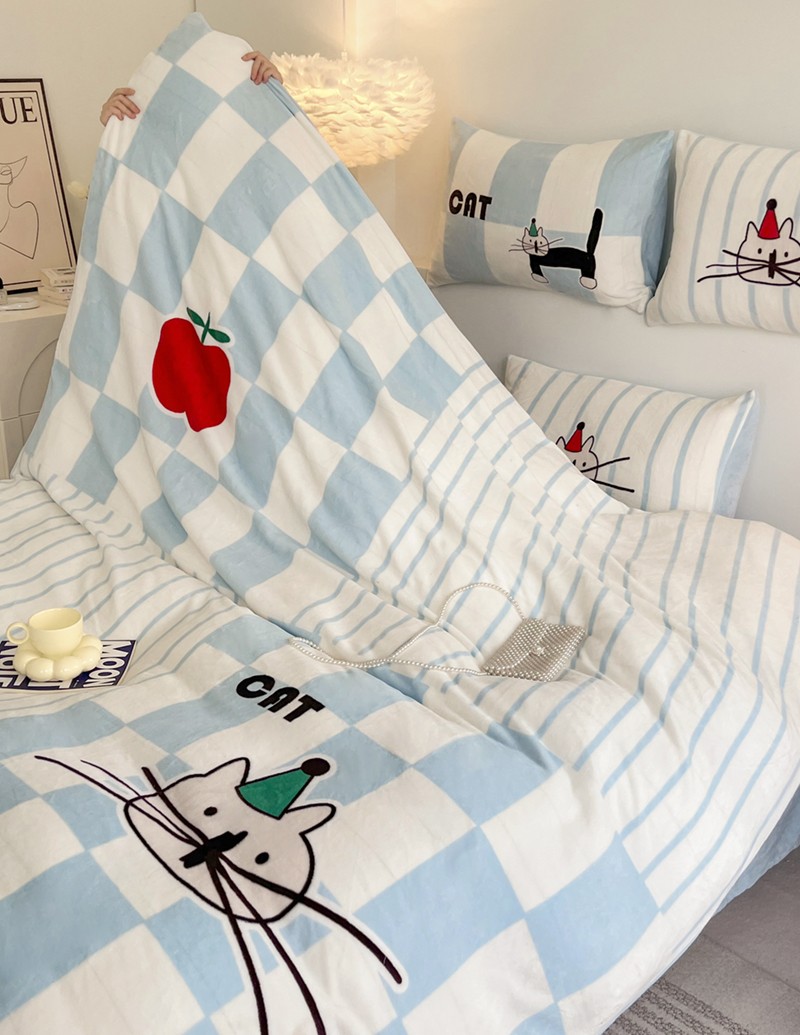 (总)寐居家纺 2025新款A类牛奶绒毛巾绣床盖,组合,格纹萌犬,红果果,萌兔有约,年年有鱼,甜心小骑,星伴小象