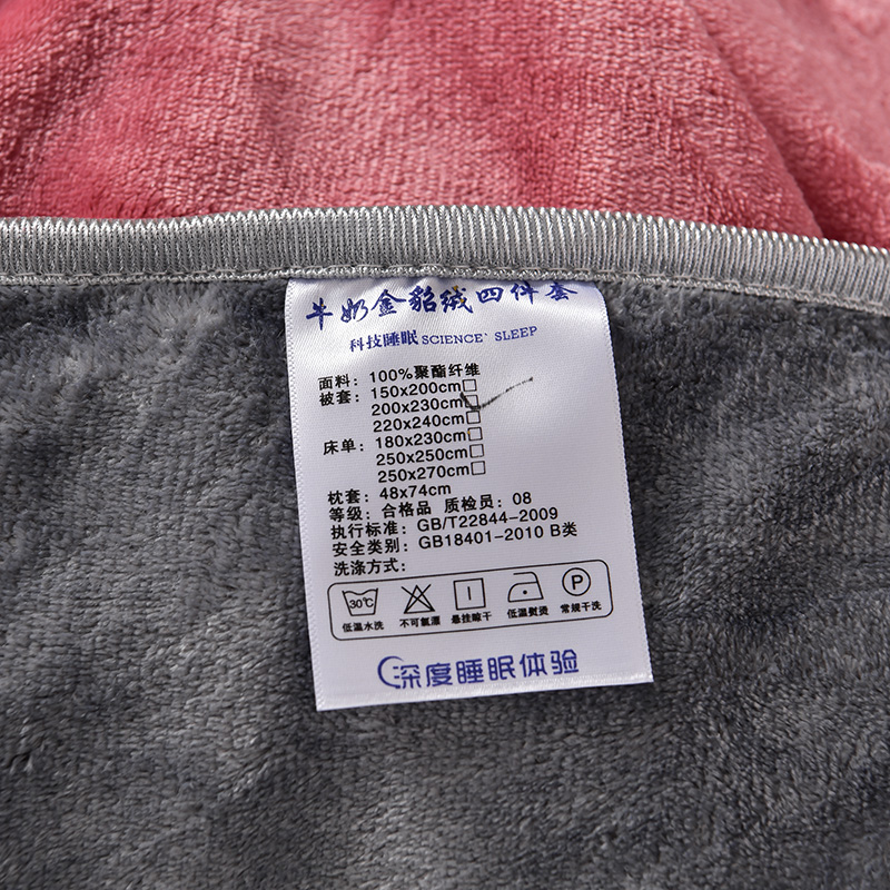 商品名称:畅畅家纺 2023新款纯色8.5斤9斤牛奶绒法莱绒宝宝金貂绒四件套 粉红+浅灰