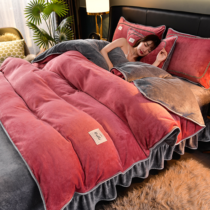 (总)畅畅家纺 2024新款高克重加厚保暖冬季牛奶绒纯色床盖款四件套,豆沙,灰色,天蓝,玉色,中国红